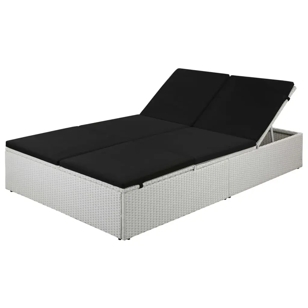 Vidaxl Double Sun Lounger With Cushions Beige Poly Rattan