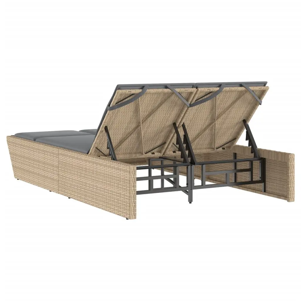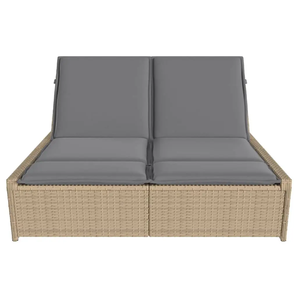 Vidaxl Double Sun Lounger With Cushions Beige Poly Rattan