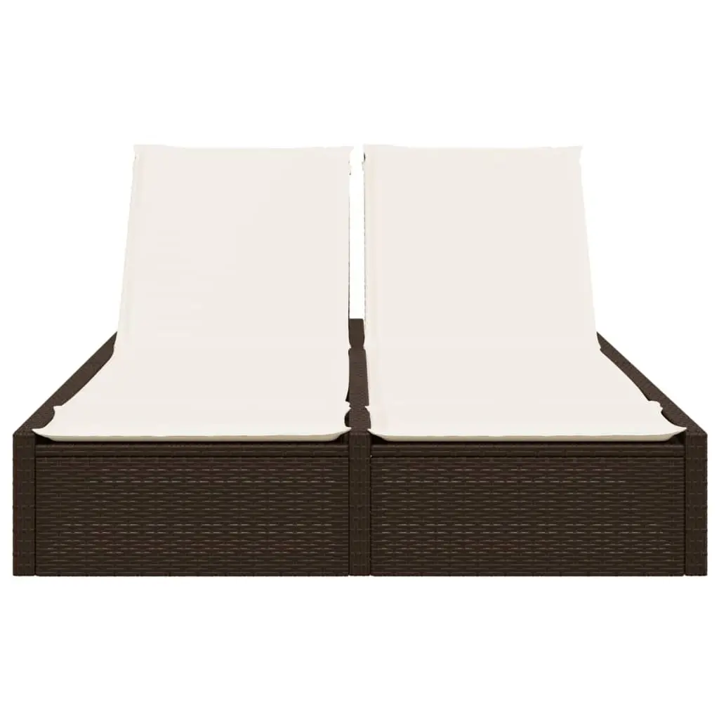 Vidaxl Double Sun Lounger With Cushions Brown Poly Rattan