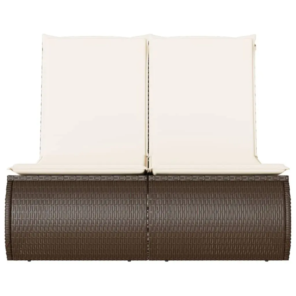 Vidaxl Double Sun Lounger With Cushions Brown Poly Rattan
