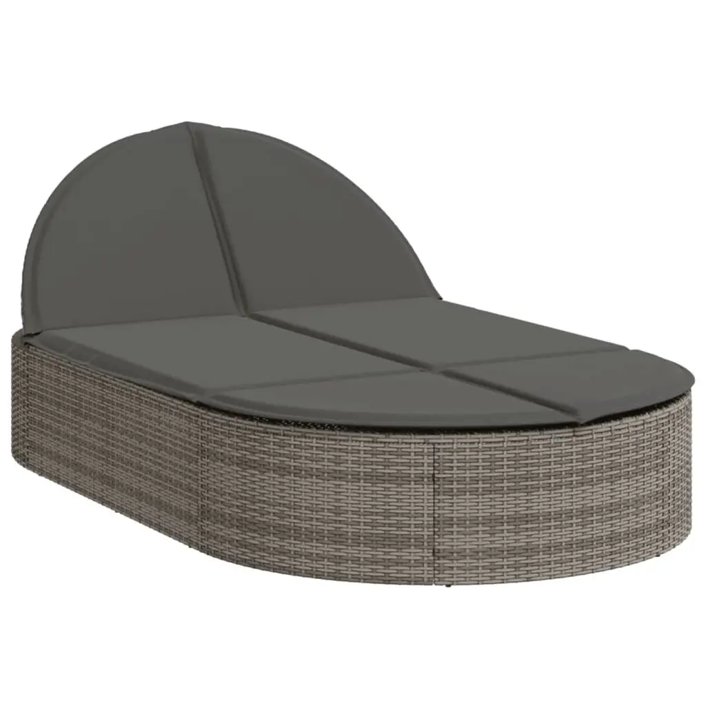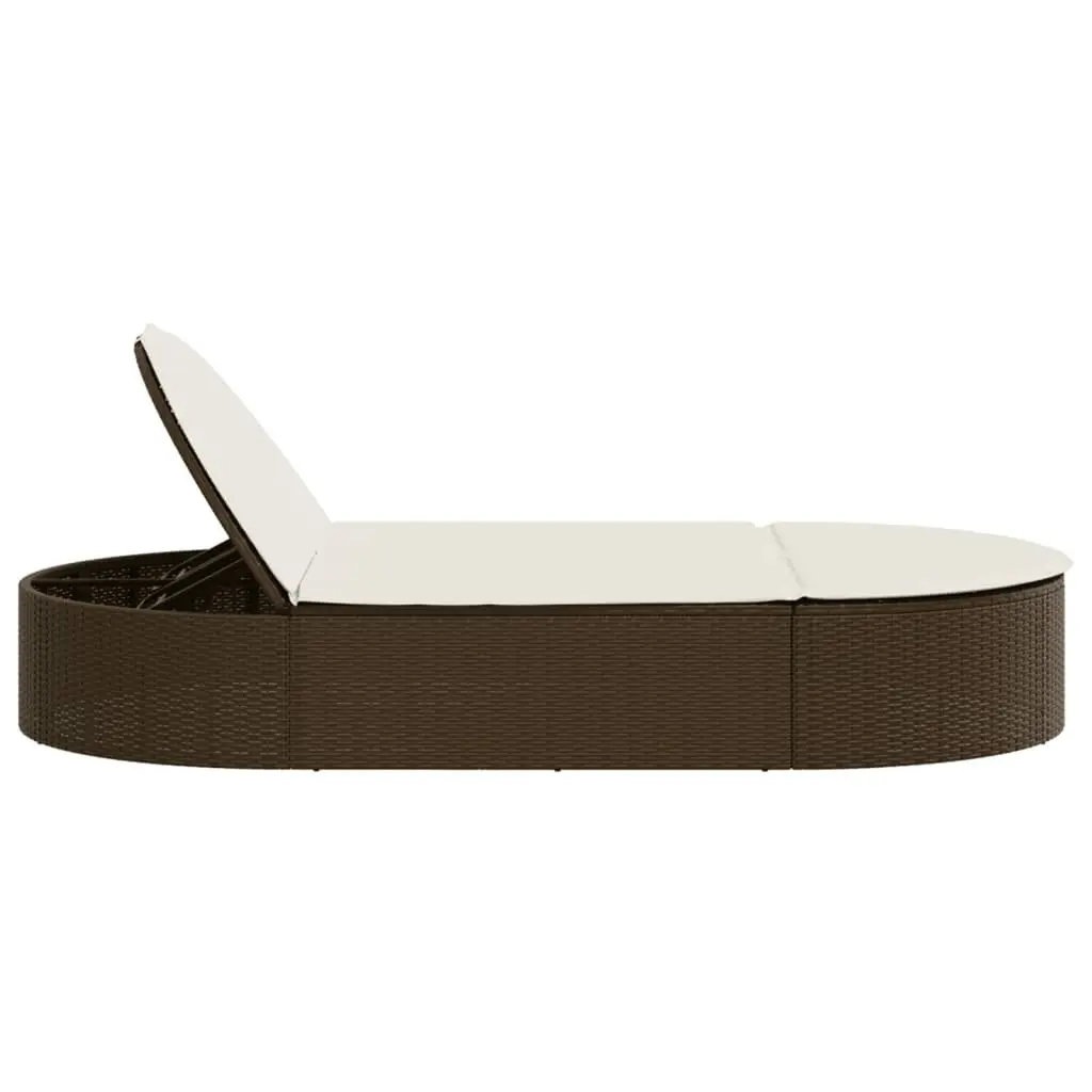 Vidaxl Double Sun Lounger With Cushions Brown Poly Rattan