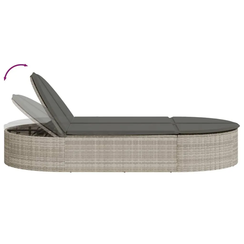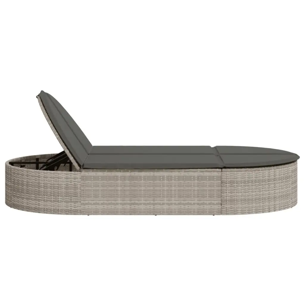 Vidaxl Double Sun Lounger With Cushions Light Grey Poly Rattan