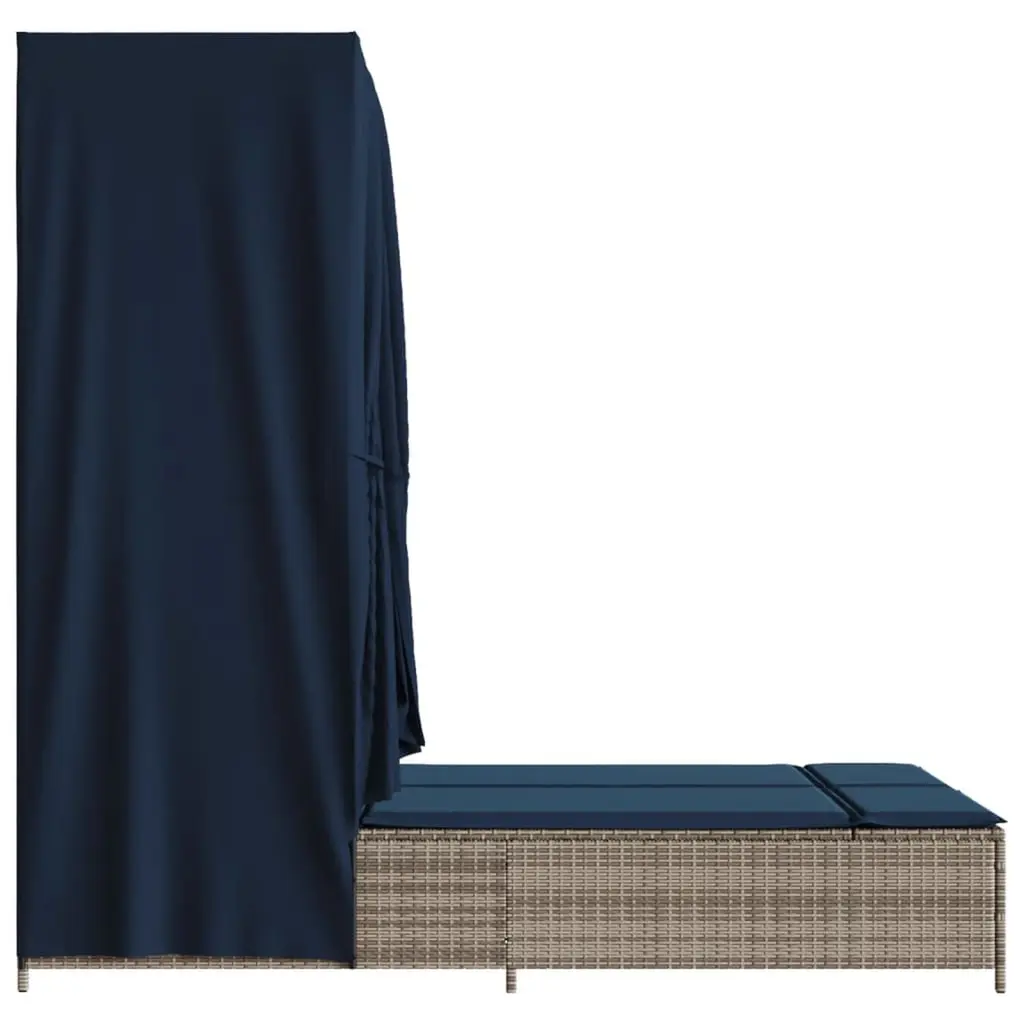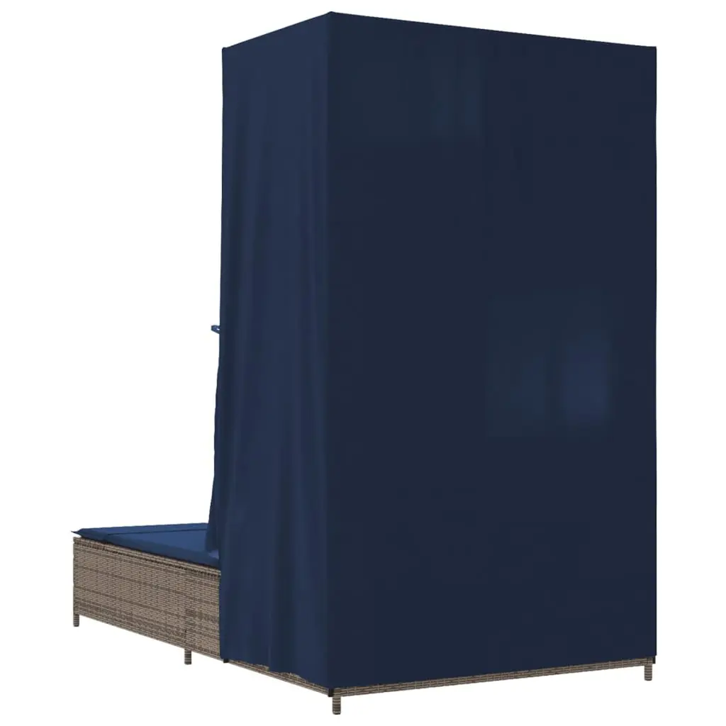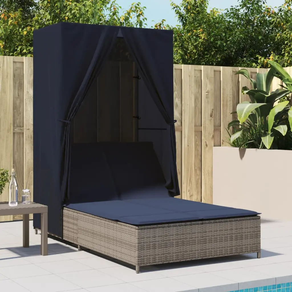 Vidaxl Double Sun Lounger With Roof And Curtains Gray Poly Rattan