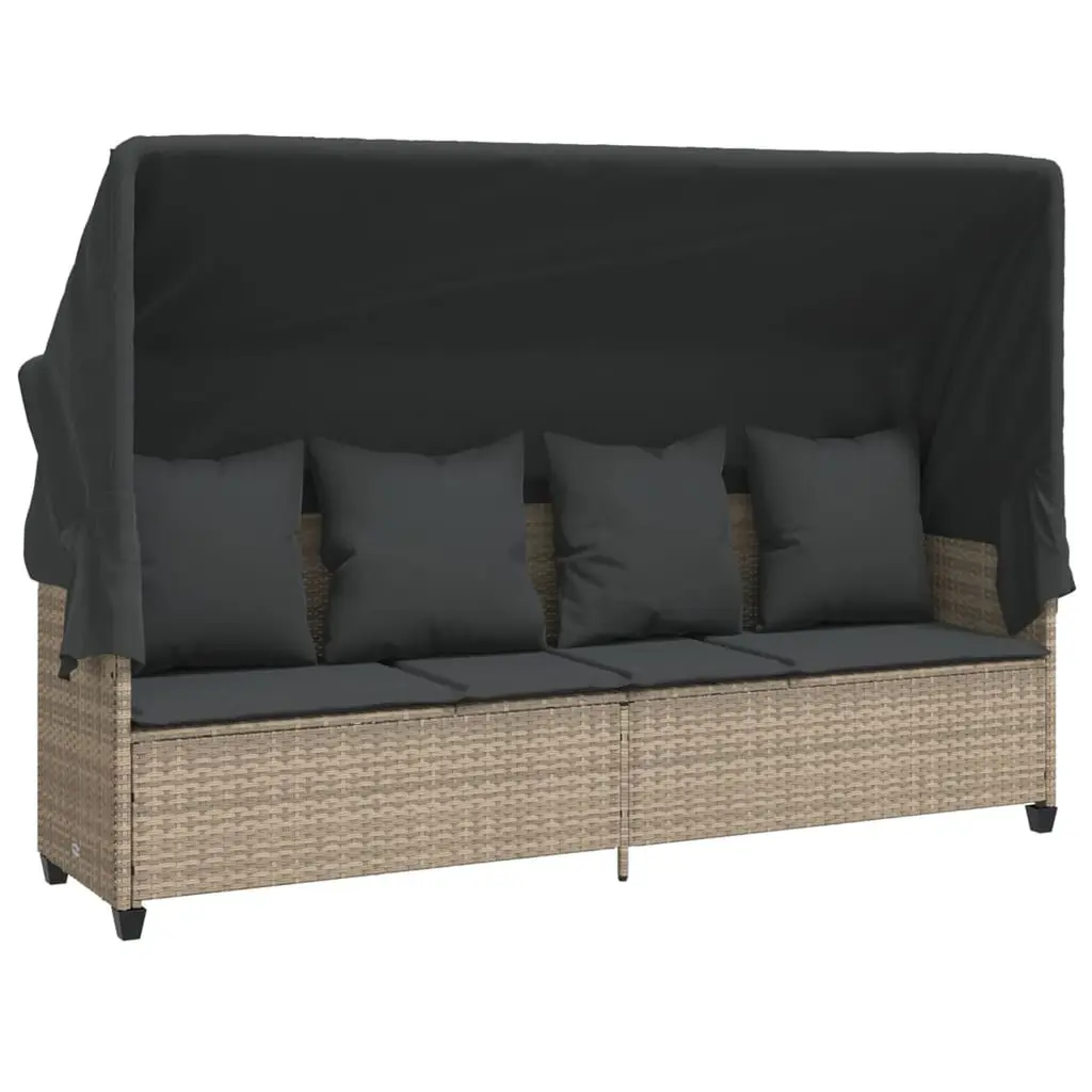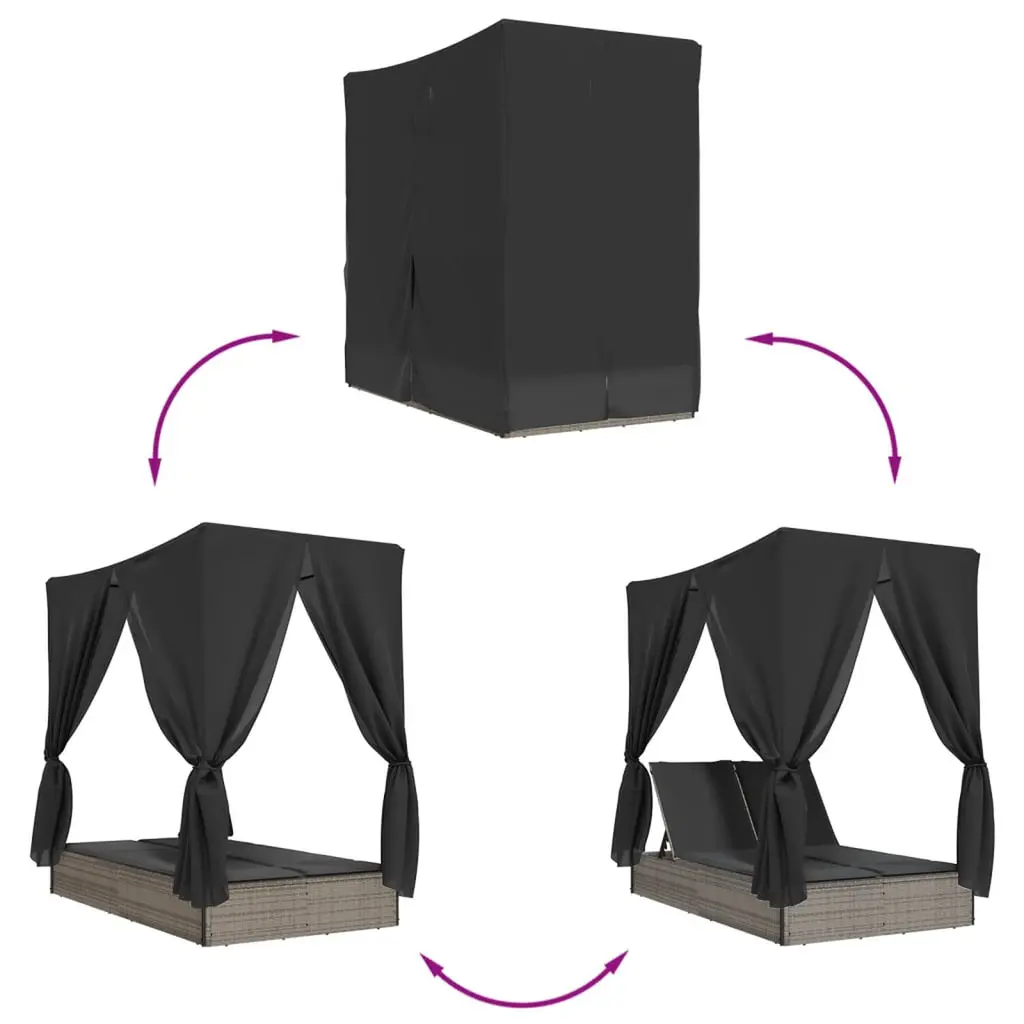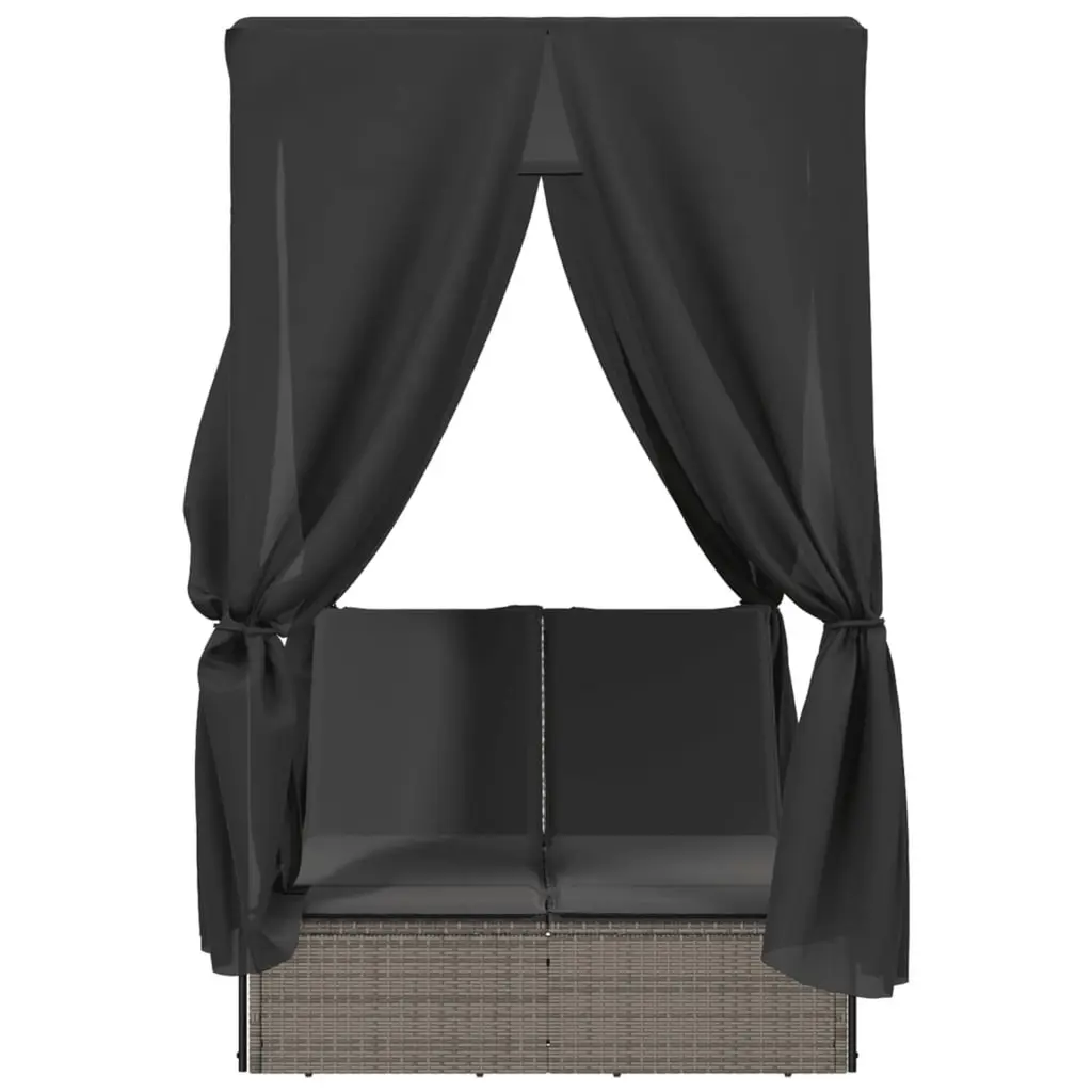 Vidaxl Double Sun Lounger With Roof And Curtains Grey Poly Rattan