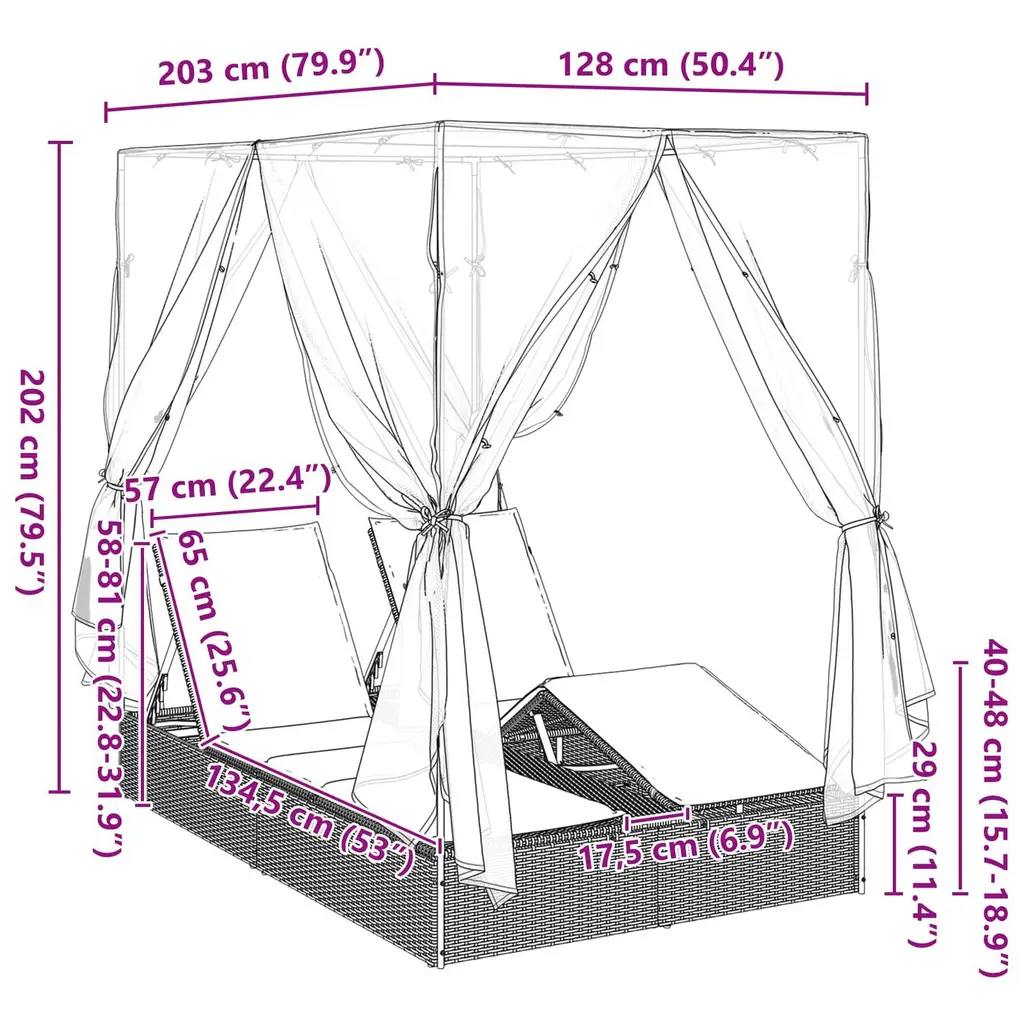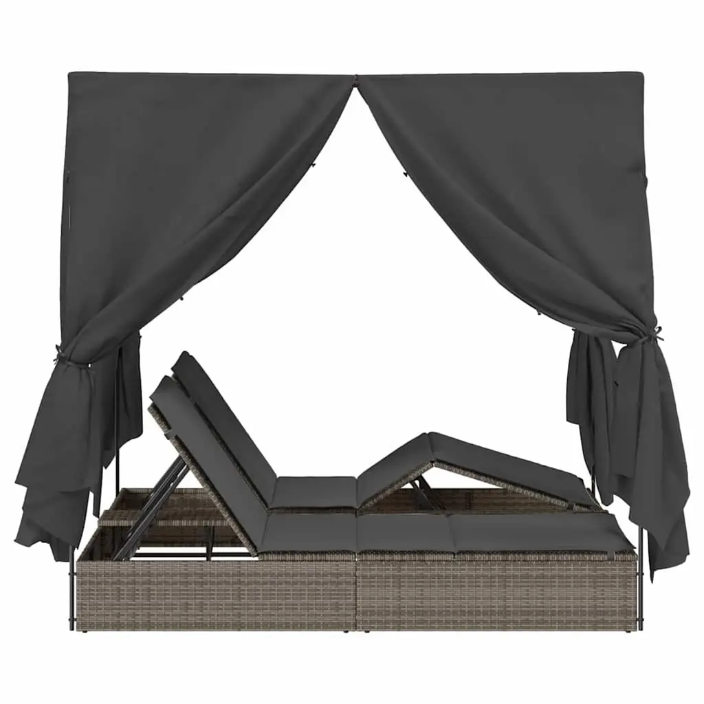 Check out this stunning Outdoor Double Sun Lounger with Roof and Curtains—it's the ultimate in outdoor lounging. Picture yourself soaking up the sun on a lovely morning or kicking back on a breezy evening, all while comfy and shaded by this fab lounger. Its classy design and flexible layout make it a top pick for yards or patios, giving you an amazing outdoor experience. Premium Materials: The lounger is made from PE rattan, looking sleek while being UV-resistant and weatherproof. Its steel frame brings stability and strength, so it’s ideal for outdoor use and will last for ages.Integral Components: You get a roof fabric, 8 side curtains, and 2 seat cushions included. The curtains add privacy, and the removable cushion covers make cleaning a breeze, which is super convenient for users.Feature Enhanced Design: With adjustable backrest and footrest options, this double sun lounger is all about your comfort. You’ll always find the best position to kick back, soak up the sun, or read your book.Versatile Uses: Perfect for any outdoor area like yards or patios, this lounger's designed just for outside fun. It’s a great partner for summer evenings watching the sunset or early mornings meditating in peace.Easy Maintenance: The seat cushions have removable covers that are easy to wash, keeping them looking fresh over time. The PE rattan and metal build only need a quick clean, so it’s super low maintenance.