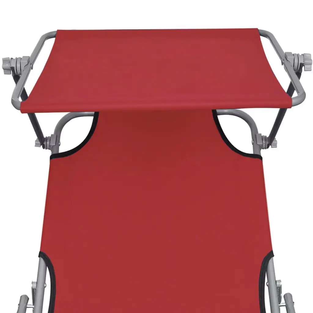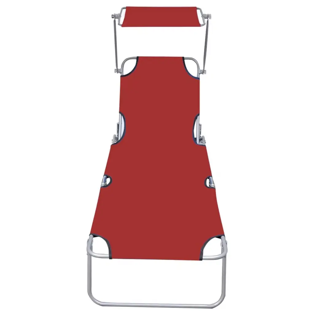Vidaxl Folding Sun Lounger With Canopy Red Aluminum