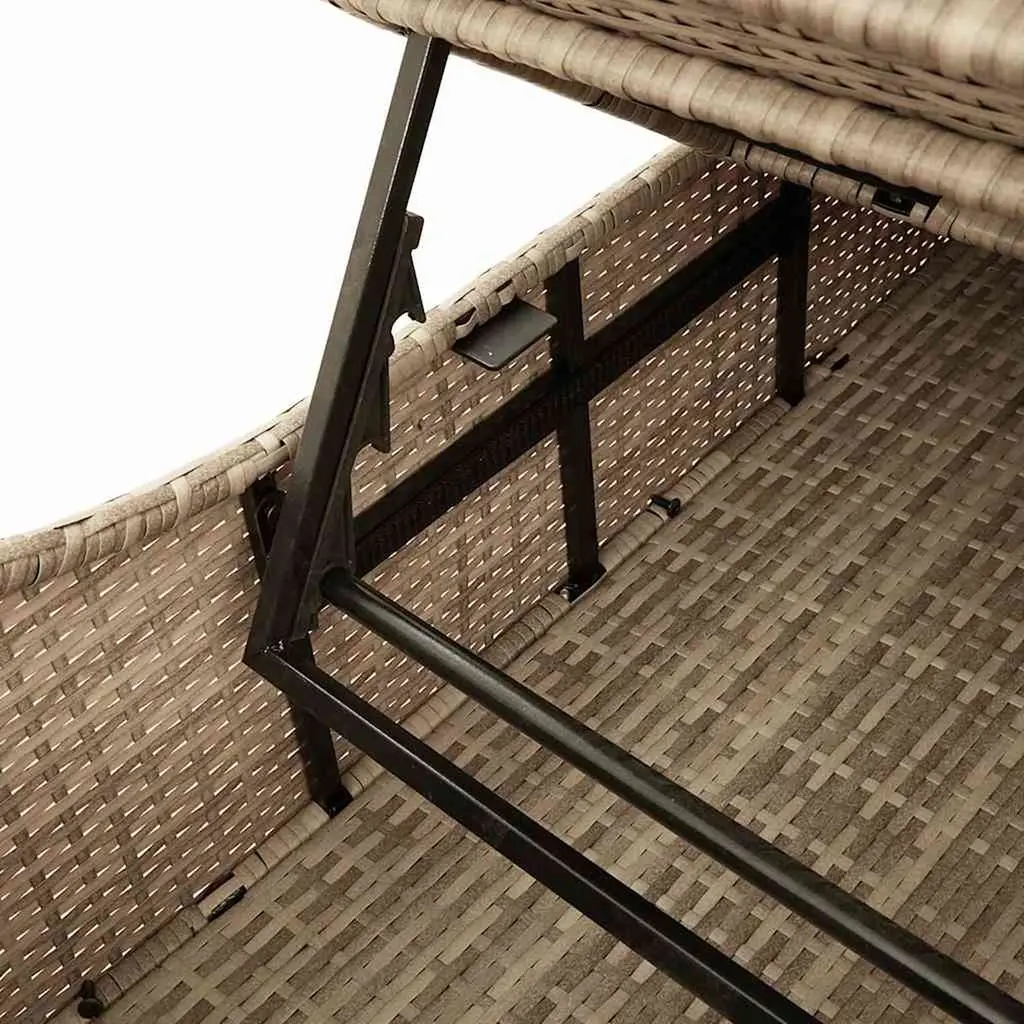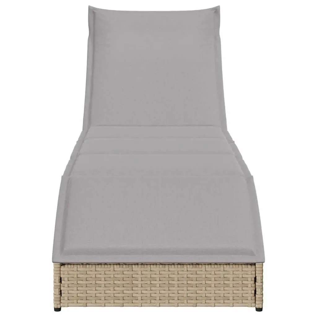 Vidaxl Folding Sun Lounger With Cushion And Storage Beige Poly Rattan