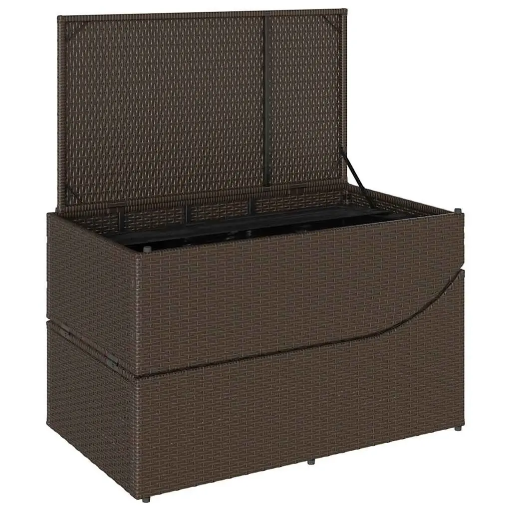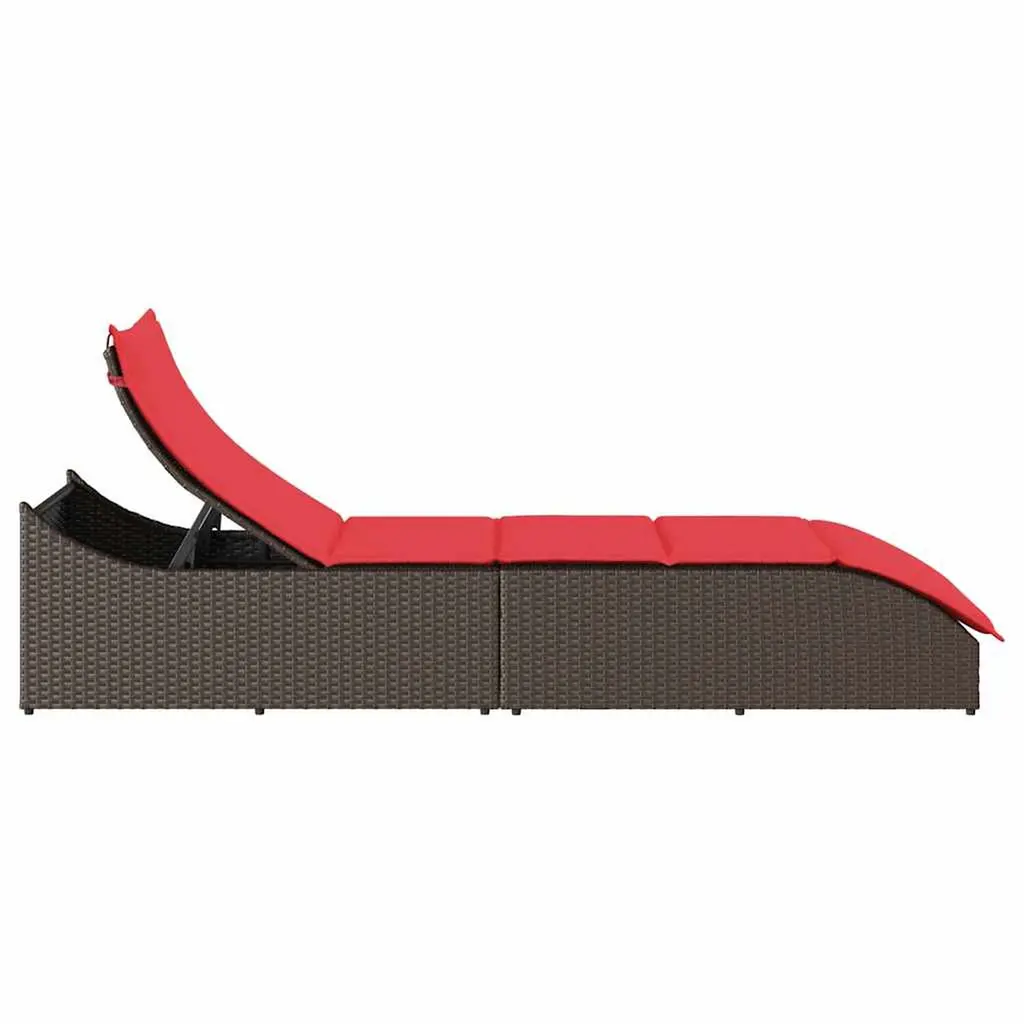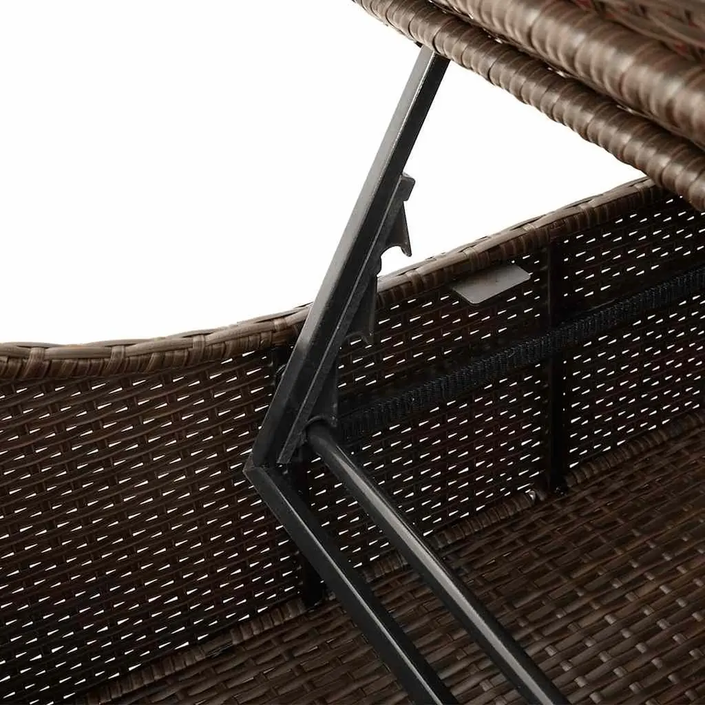 Vidaxl Folding Sun Lounger With Cushion And Storage Brown Poly Rattan