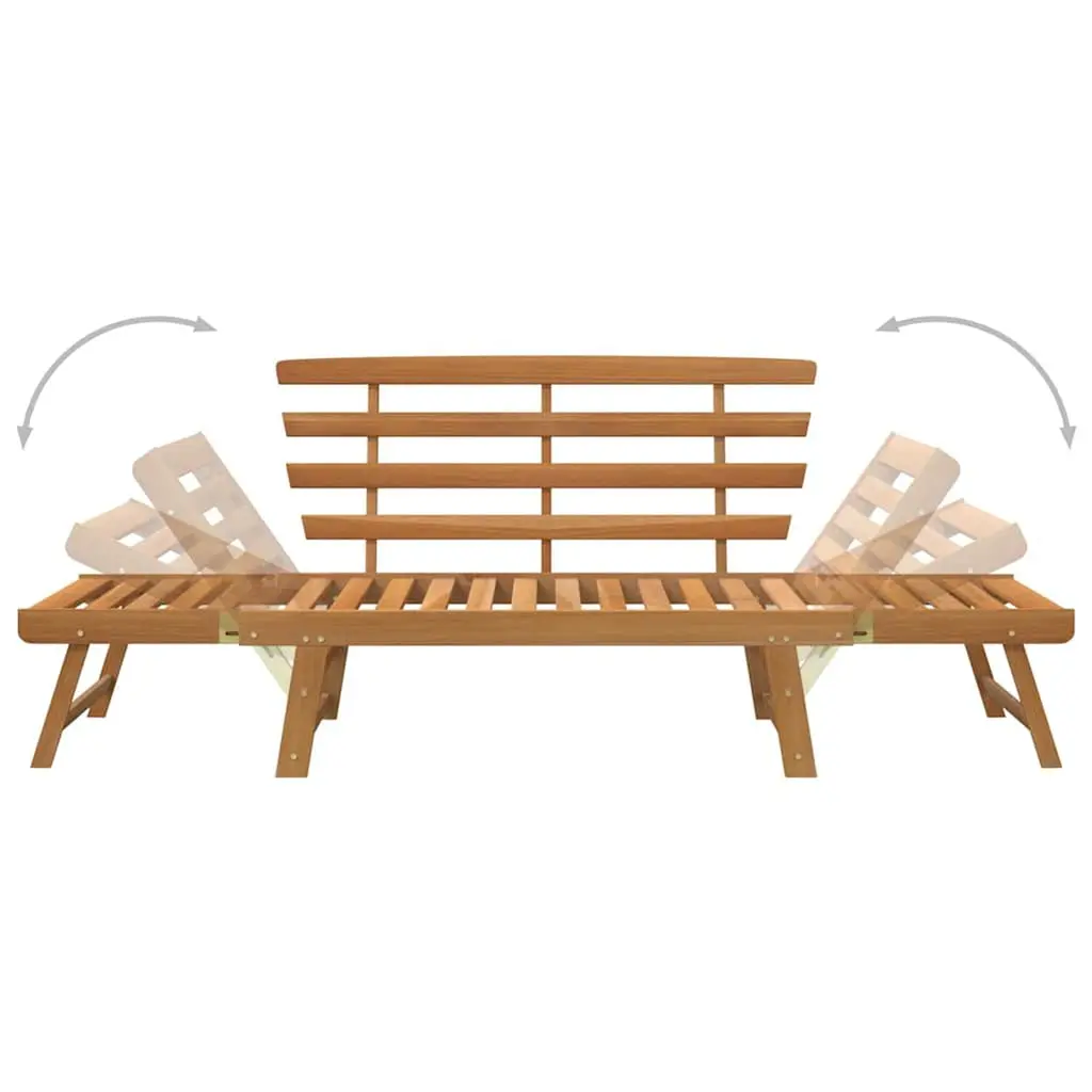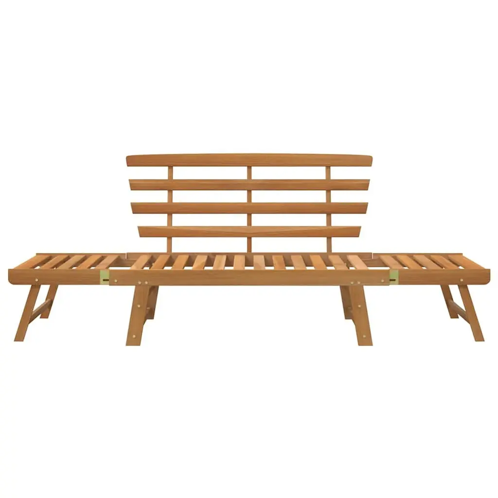 This 2-in-1 convertible garden bench switches easily from a comfy seating area to a relaxing daybed, giving you plenty of options for chilling out. Its strong acacia wood design boosts durability while bringing a warm vibe to any garden, patio, or balcony, perfect for sunbathing or stargazing in total comfort. Versatile Functionality: The ability to switch from a bench to a daybed lets you use it in various ways. Whether you’re relaxing with a book or having friends over, this piece adapts to your needs to keep you comfy. Sturdy Construction: Built from solid acacia wood, it's tough and can handle outdoor conditions. The oiled finish protects the wood and brings out its rich tones, making it look great. Comfort Focused: Adjustable armrests add to the comfy design, letting you find your perfect lounging position for those lazy afternoons. Elegant Style: The sleek design and natural wood texture blend nicely with any outdoor decor, making it a chic touch to your space. Easy Maintenance: Keeping it clean is a breeze—just give it a wipe with a damp cloth. Plus, when you’re not using it, cover it up to protect it from the weather and keep it looking lovely.