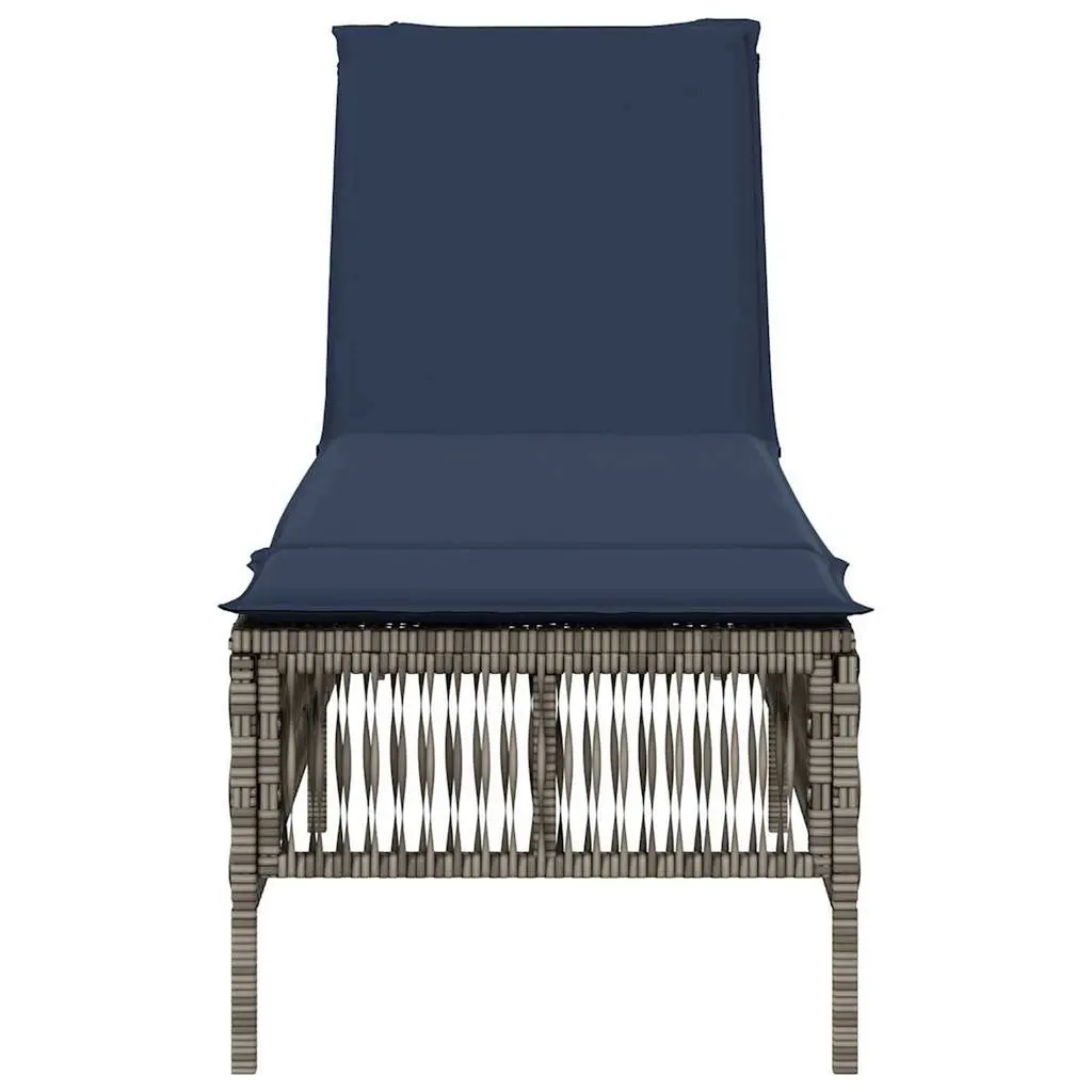 Vidaxl Patio Sun Lounger Grey Pe Rattan Large Multi-Position Backrest