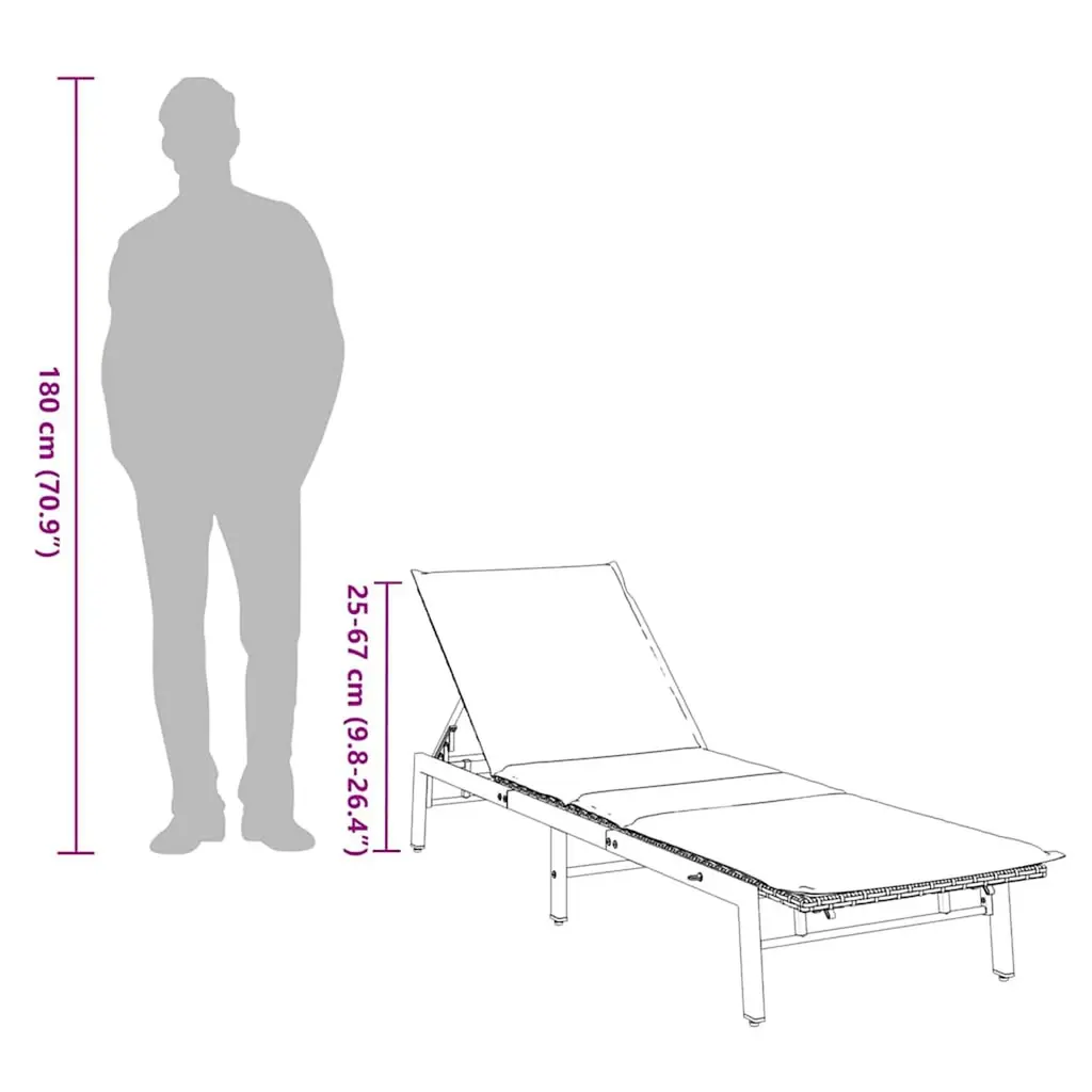 This fab sun lounger mixes style and practicality. It's got a spacious and gorgeous design in beige poly rattan. Perfect for chilling in your garden or by the pool, it gives you an ideal spot to relax and soak up the sun, turning your outdoor area into a lovely getaway. Comfy and Adjustable: The lounger has a backrest you can easily change to find that perfect angle for chilling or reading. It's a must-have for lounging outside, boosting your sunbathing experience. Durable Build: Made with UV-resistant materials and a tough powder-coated frame, this lounger is made to handle all kinds of weather while staying gorgeous. Easy to Clean: The cushion cover has a zipper, so it’s a doddle to take off and wash. This keeps your cushion looking sharp with minimal hassle. Super Versatile: Perfect for balconies, gardens, or poolside, this lounger is a great choice for soaking up the sun. Whether you’re sipping a drink, flipping through a book, or just enjoying the rays, it fits perfectly into your lifestyle. Just Right: At 78.7 in long, 23.2 in wide, and a back height of 26.4 in, this lounger is comfy enough for adults, supporting up to 242.5 lb, great for chilling out in style.