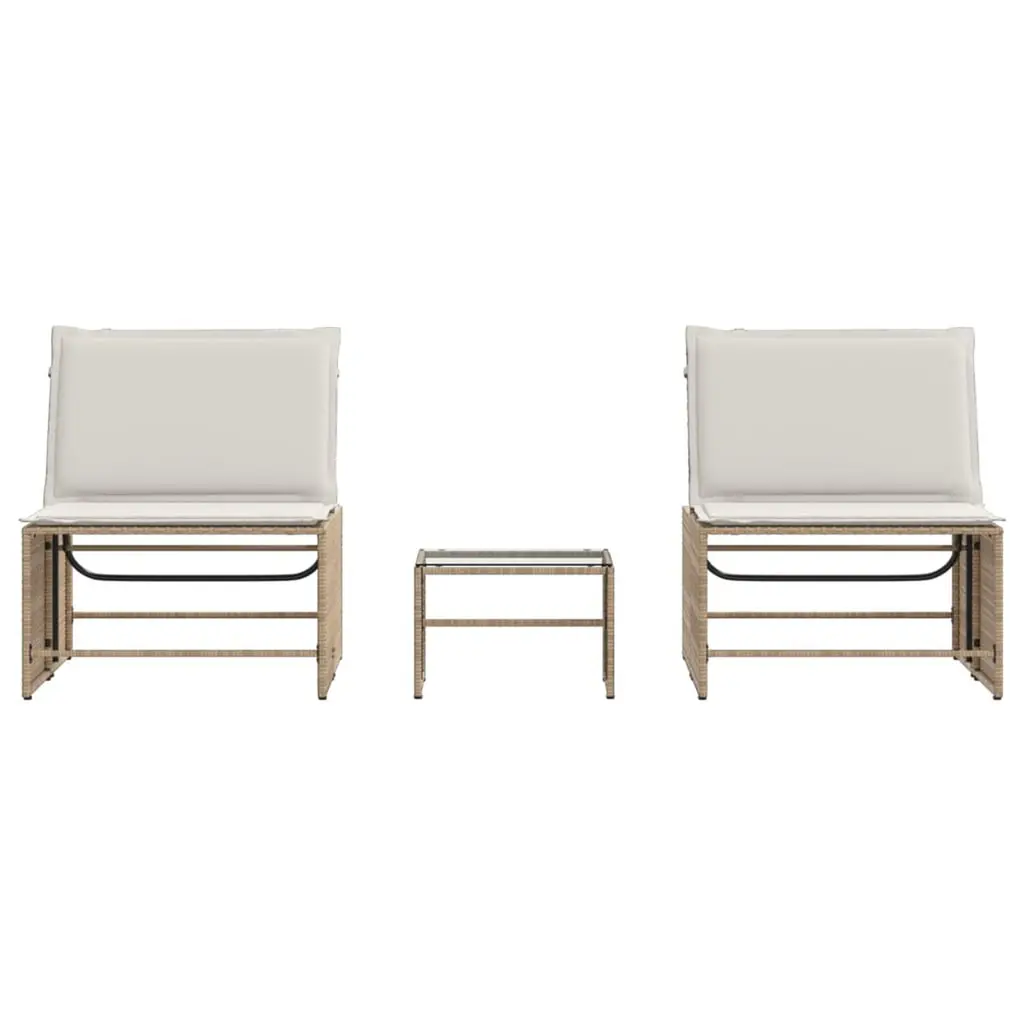 This sun lounger set is the perfect choice for relaxing outdoors, mixing comfort with a modern look. Its lovely beige and cream colors brighten up outdoor spaces while creating a comfy chill zone for lounging, reading, or soaking up the sun with a friend, great for patios, balconies, and gardens. Made for extreme relaxation with an adjustable backrest that lets you choose multiple positions, ensuring you find your ideal lounging angle, whether you’re reading or just soaking up the sun.Cushions have removable, washable covers, making it super easy to keep them fresh and clean for your leisure time.Built from UV-resistant materials, these loungers stand up to the weather without fading, promising long-lasting use even in bright sunshine.The set includes a matching table for your convenience, giving you a spot to place your drinks, books, or snacks while you relax.Its modern design means the loungers fit right in with any contemporary decor, adding style to your outdoor area and making every gathering feel special.