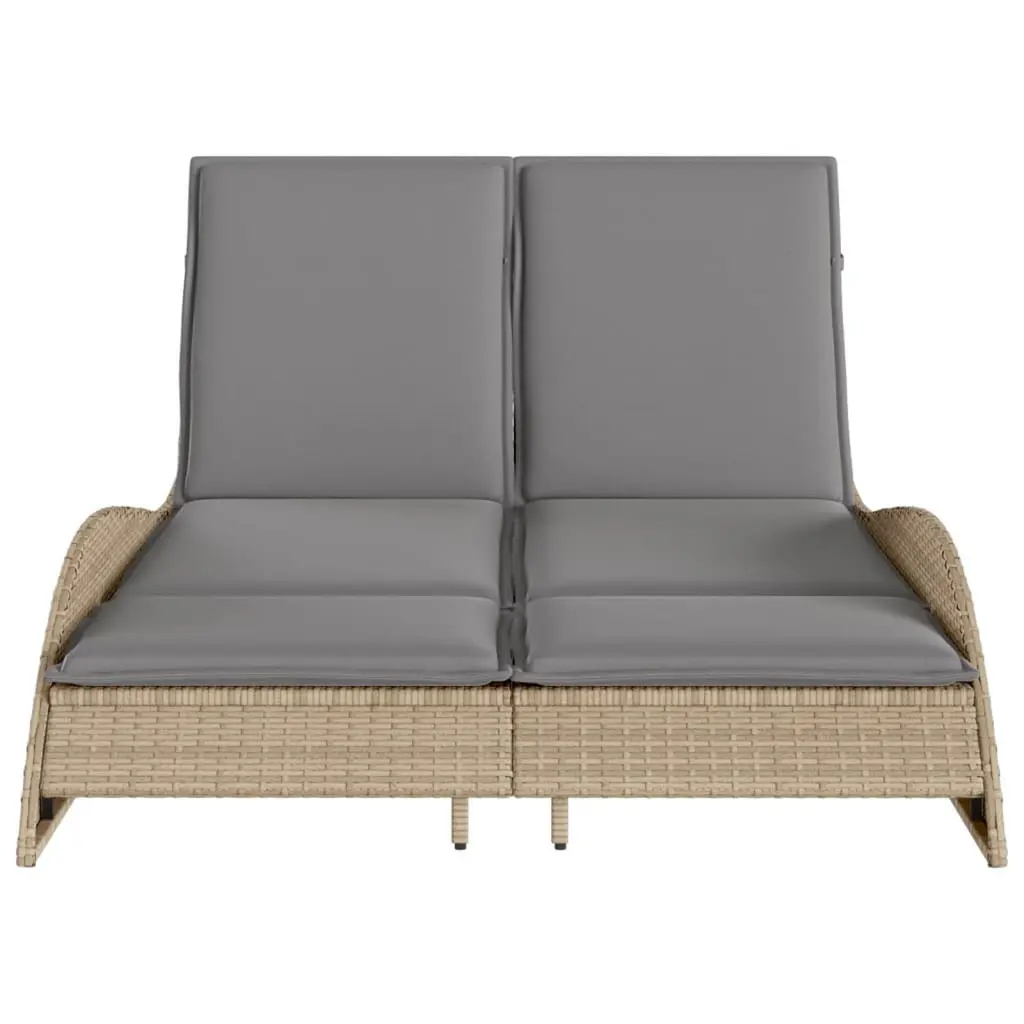 This cushioned sun lounger is stylish and practical, making it a fab addition to your outdoor space. With its smart beige and grey look, you can easily picture yourself lounging by the pool or soaking up the sun on a warm day, feeling that lovely breeze while sitting on its comfy cushions. Adjustable Features: The sun lounger features a manual, multi-position backrest that allows users to find their perfect angle for relaxation, whether sitting upright or reclining back for a nap. This versatility makes it suitable for various outdoor activities, from reading and sunbathing to outdoor dinners. Premium Materials: Built from weather-resistant PE rattan and sturdy powder-coated steel, this lounger is designed to withstand the elements, ensuring that it maintains its elegant look and reliability through many summers. Comfort and Convenience: Two generously sized cushions with a plush foam filling provide superior comfort during extended periods of use. Each cushion is equipped with a removable cover, making it easy to clean and maintain, while preserving the beauty of the lounger. Spacious Seating: Accommodating up to two people with a maximum weight limit of 242.5 lbs, this lounger is excellent for couples seeking communal comfort or individuals desiring extra space to stretch out and unwind. Ideal for patios, gardens, or poolside lounging. Perfect Dimensions: Measuring 44.9 in in width, 80.7 in in length, and 28.7 in in height, this sun lounger strikes a perfect balance between spaciousness and compactness, fitting ideally on balconies, outdoor decks, or personal backyards.