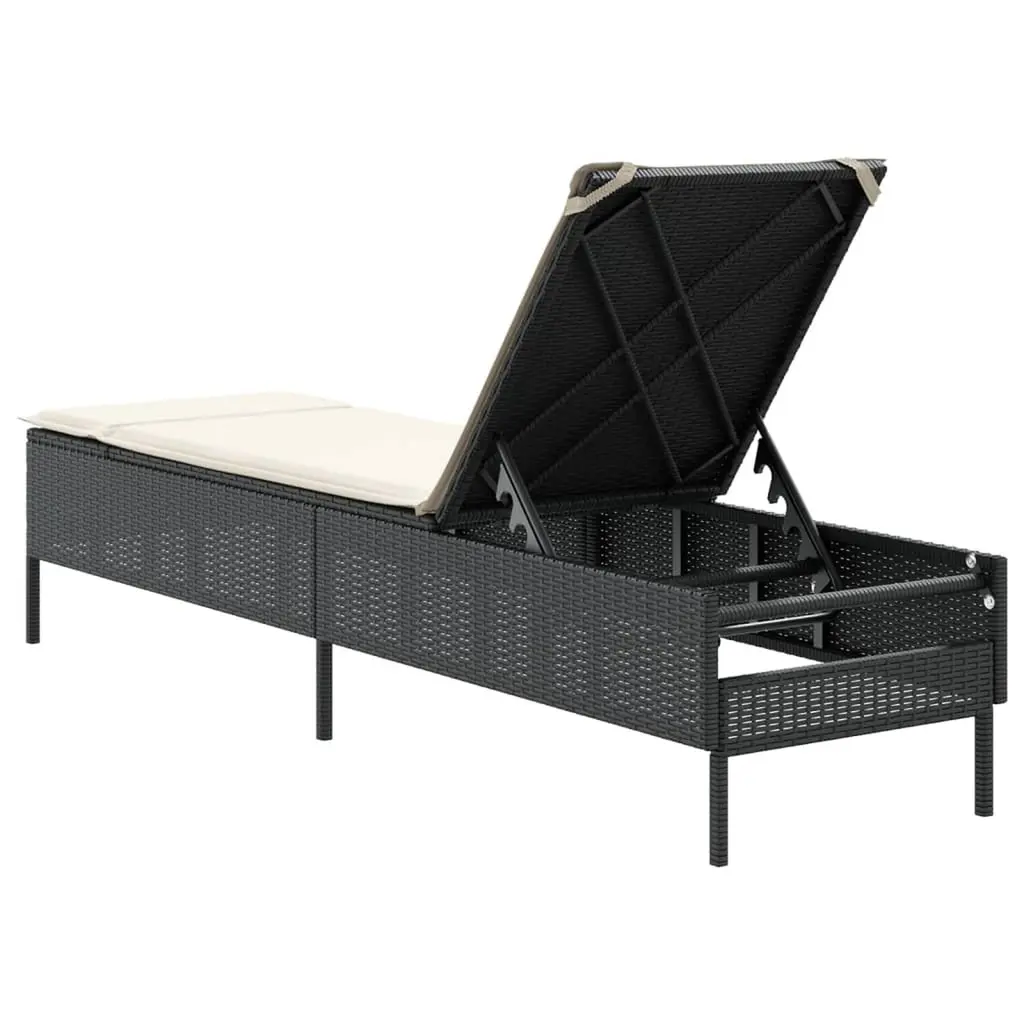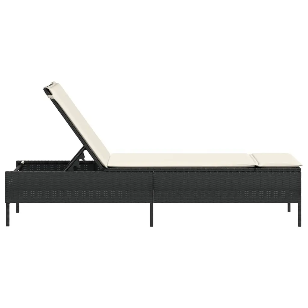 Vidaxl Sun Lounger Black Pe Rattan Full Size Adjustable Backrest