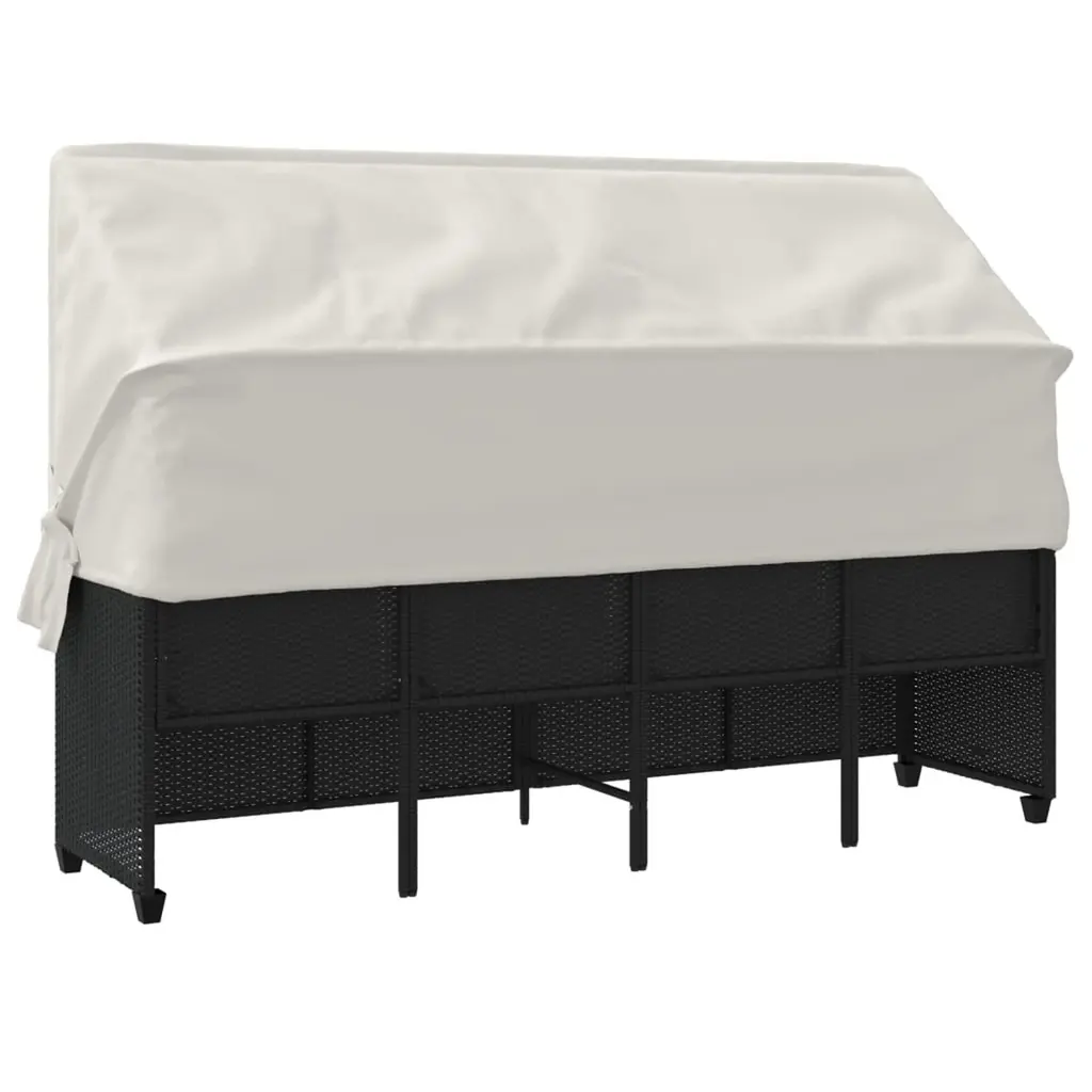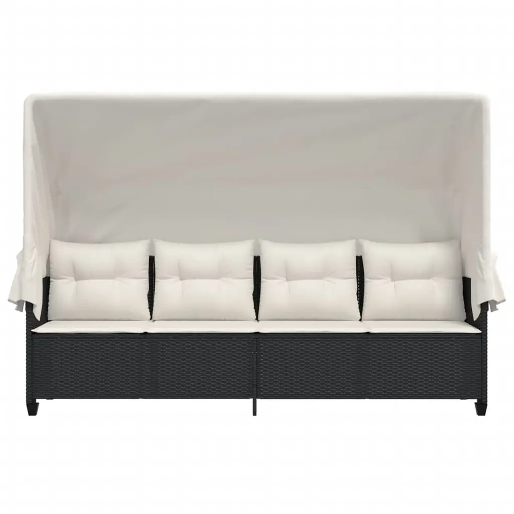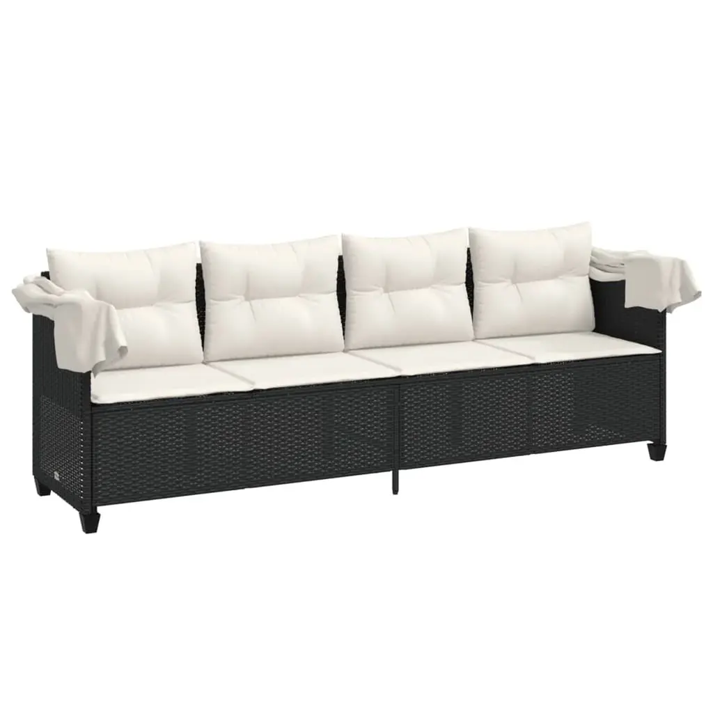 Vidaxl Sun Lounger Black Pe Rattan Large Retractable Sun Lounger