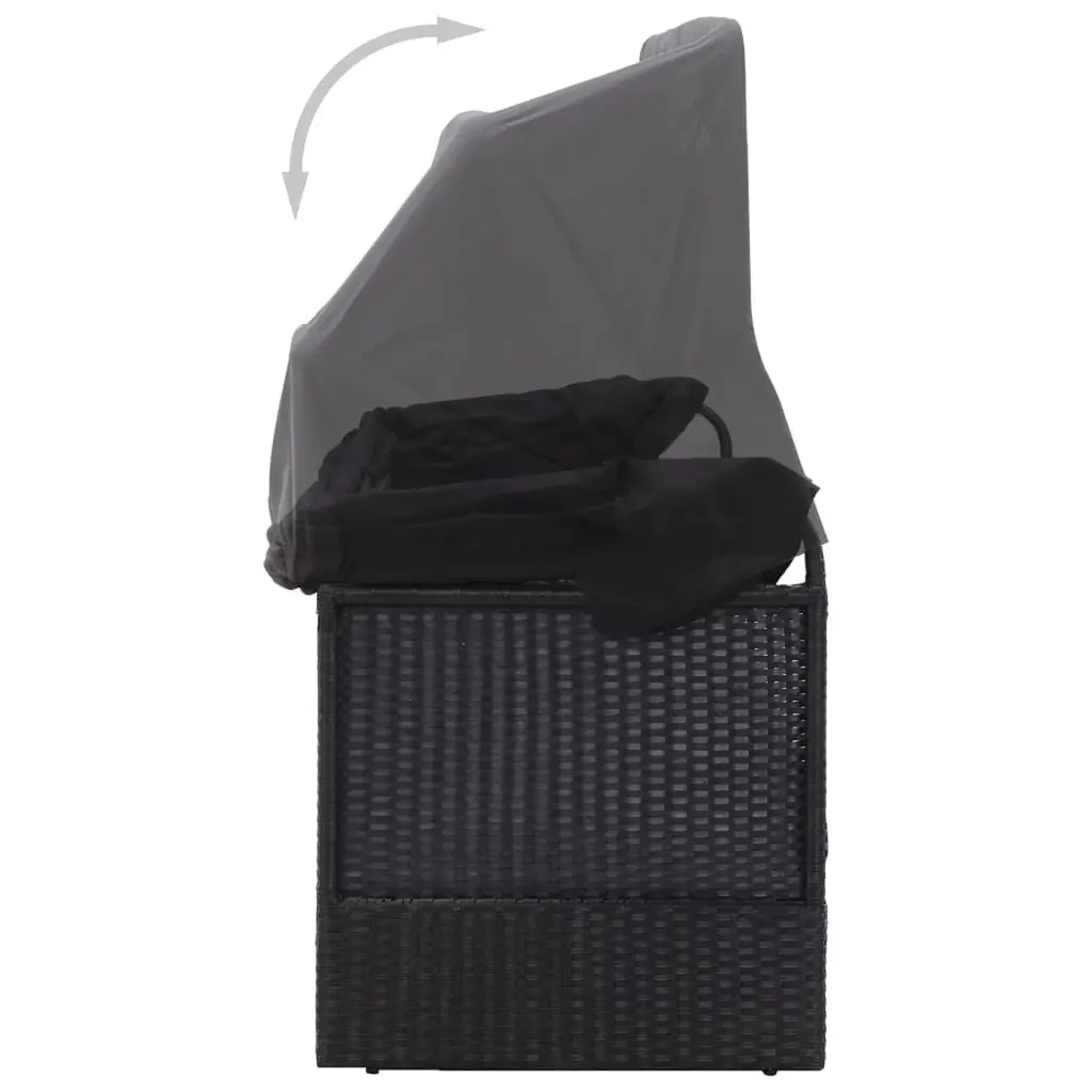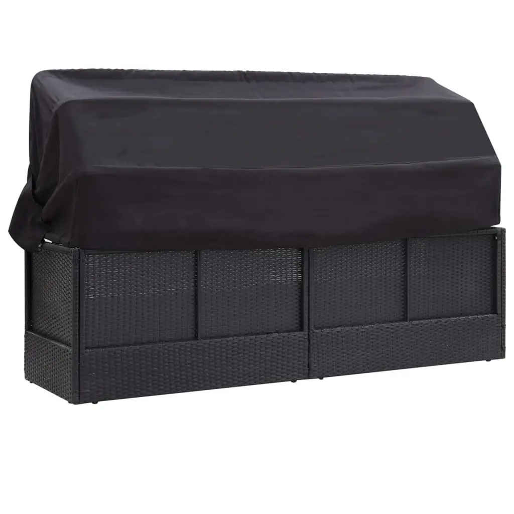 Vidaxl Sun Lounger Black Pe Rattan Outdoor Sofa Rectangular