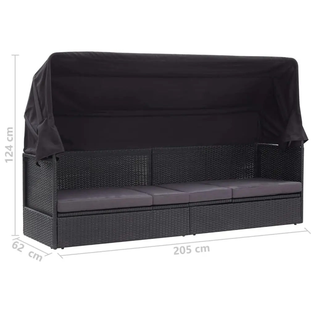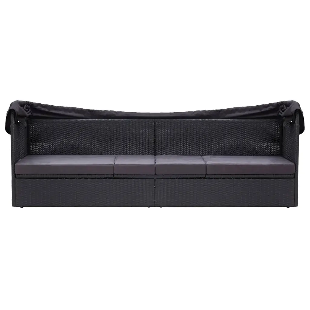 This outdoor sofa bed is the perfect mix of comfort and style for enjoying sunny days outside. The sleek black poly rattan design not only looks great but also ensures that it's built to last for garden, patio, or poolside chilling. Weatherproof Material: The PE rattan is made to handle all weather, ensuring it lasts and is easy to care for. Chill out without worrying about damage from the weather. Spacious Seating: With room for three adults, this sofa bed promotes relaxation and social time, making it perfect for family gatherings or a peaceful solo read. Adjustable Canopy: The removable UV-resistant canopy lets you control how much sun you get, making your outdoor experience much more comfy. Contemporary Style: The sleek, matte finish of this piece brightens up any outdoor space, while its modern look matches various furniture styles. Give your outdoor area a welcoming feel. Easy Maintenance: The cushion covers have zipper closures for easy washing, so you can keep your sofa clean easily while extending its life.