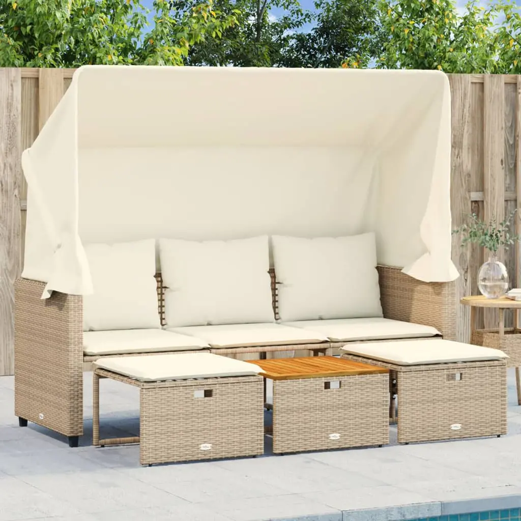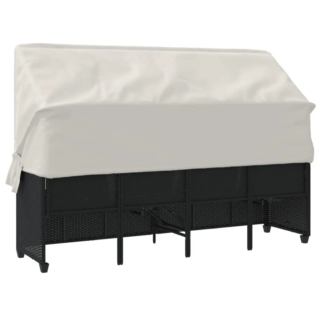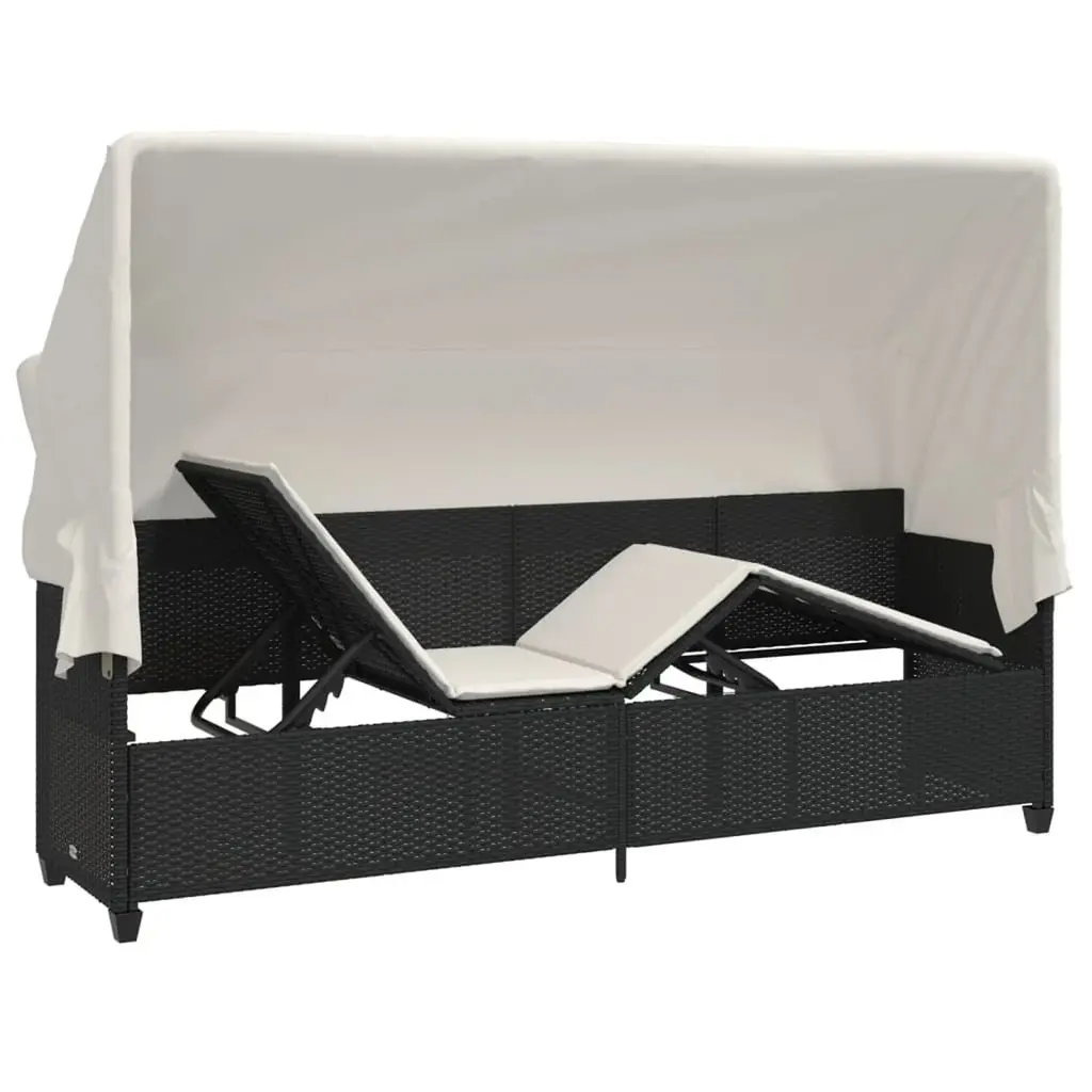 This versatile sun lounger is all about relaxation. It has a sleek modern style that fits any garden or backyard spot. The eye-catching mix of black poly rattan and cream cushions not only looks great but also keeps you comfy, turning your outdoor area into a chill zone where you can kick back and soak up the sun. Retractable Canopy: The built-in retractable canopy makes it easy to stay cool and protected from strong sunlight, so you can enjoy your time outside with ease. Whether you’re chilling alone or entertaining friends, being able to adjust the canopy to your liking really ups the experience.Easy Maintenance: With removable cushion covers that you can simply zip off and clean, this sun lounger keeps looking nice with minimal fuss. Spend less time on upkeep and more time enjoying sunny moments.Adjustable Design: This sun lounger features an adjustable multi-position backrest, so you can find your comfy spot whether you’re reading, sunbathing, or grabbing a nap. You can tweak it until you find the perfect angle for total relaxation.Durable Construction: Built with UV-resistant materials, this sun lounger is tough enough to deal with the elements without fading away. This durability means you can use it season after season without worry.Spacious Design: With generous dimensions of 80.3 in long and 29.5 in wide, this lounger can fit up to two folks comfortably. It’s ideal for kicking back in your garden or backyard.
