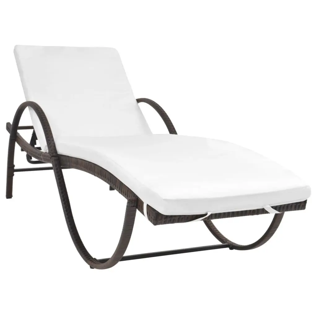 Vidaxl Sun Lounger Brown Pe Rattan, Powder-Coated Steel, Polyester Foam