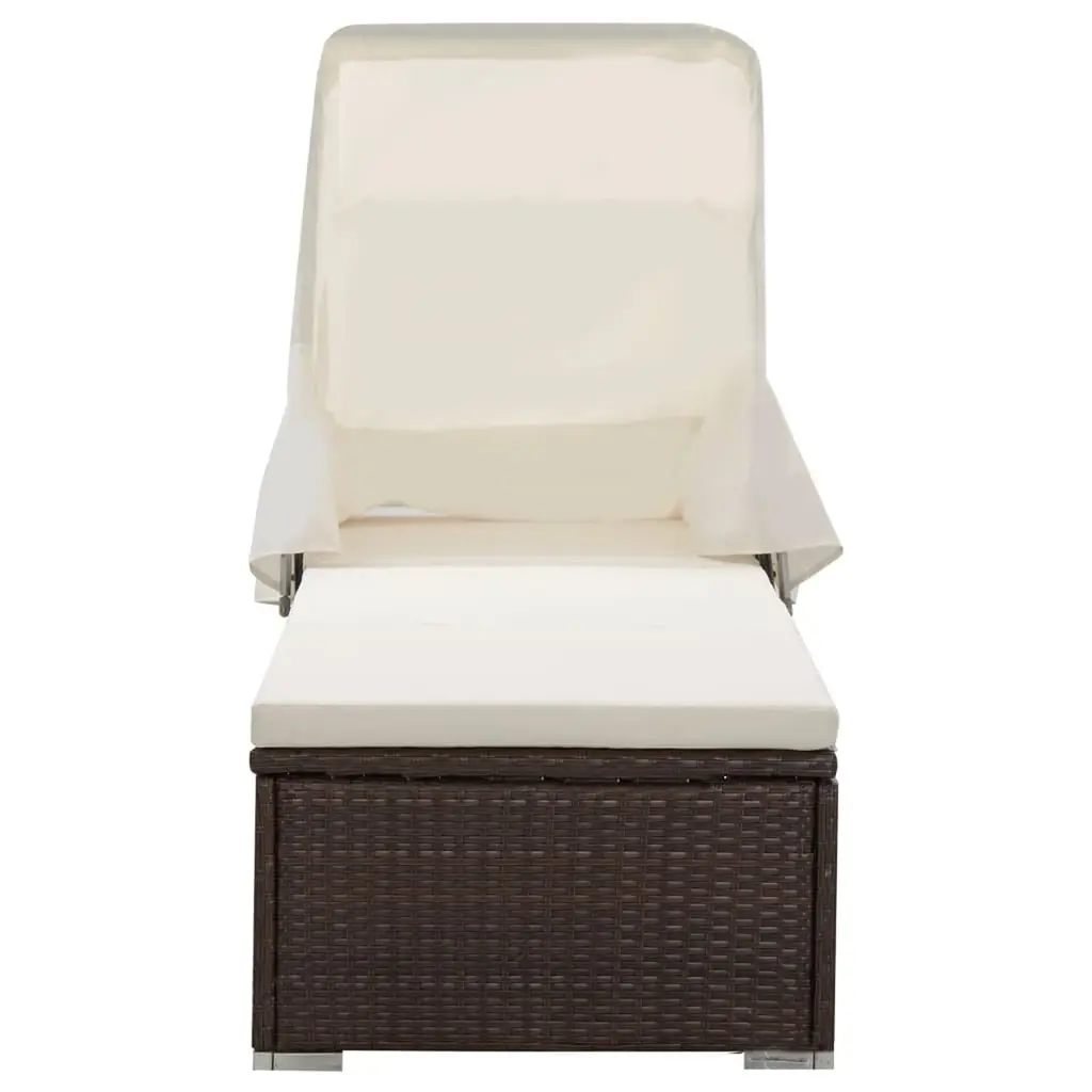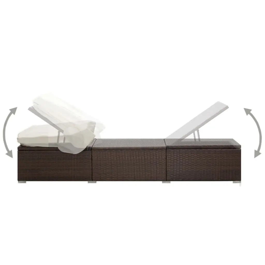 Vidaxl Sun Lounger Brown Rattan And Cream White Cushion