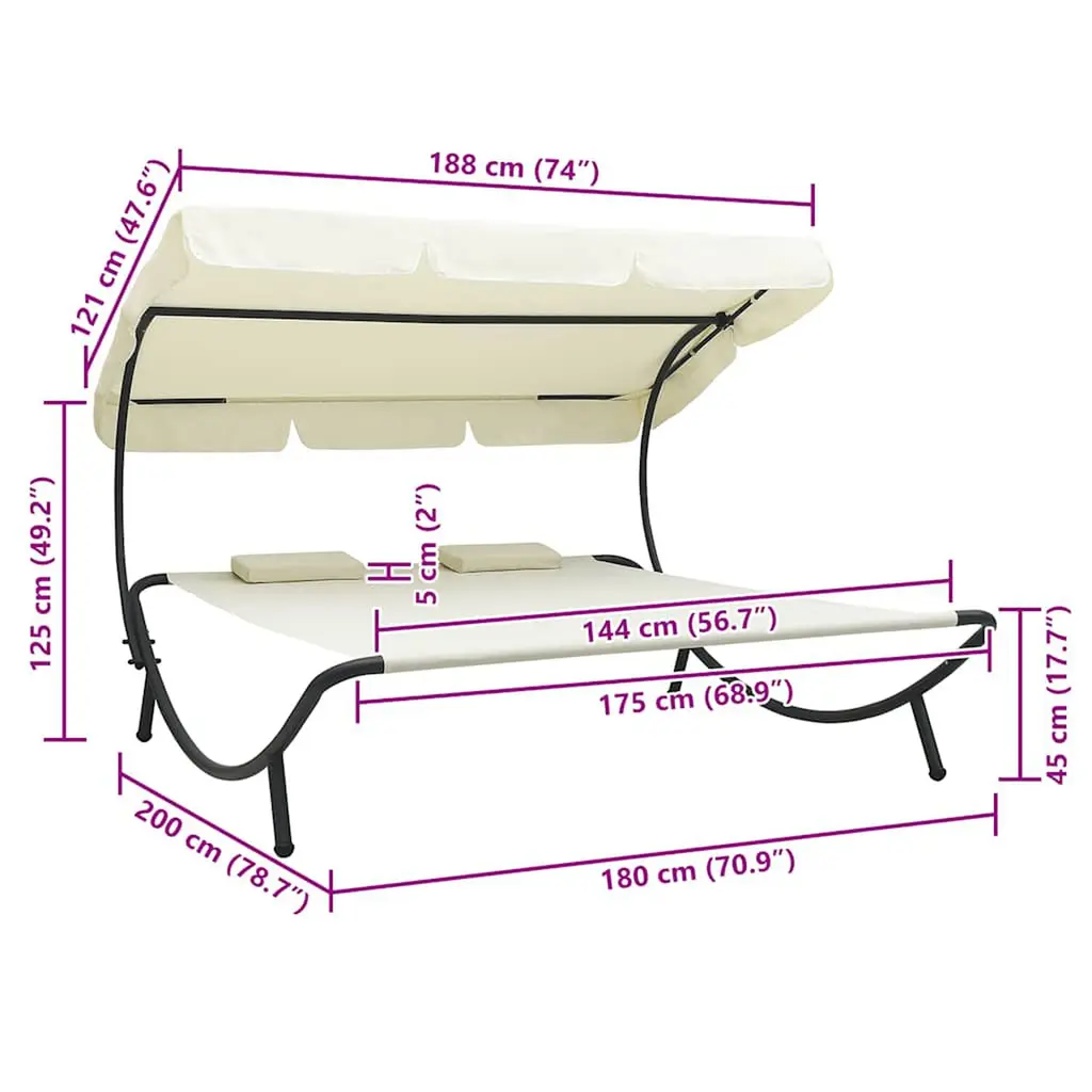 This Outdoor Lounge Bed with Canopy blends comfort and style for those who love lounging outdoors. With a sleek, minimalist design and a lovely cream white color, this sun bed fits right in with your balcony, garden, or patio decor, making it a welcoming spot for relaxation and casual hangouts. 【Stylish Canopy】 The canopy on top not only looks great on the lounge bed but also gives you essential shade, so you can enjoy sunny days without worrying about sunburn. This thoughtful feature turns your outdoor area into a nice oasis. 【Spacious Surface】 With generous dimensions of 78.7 in x 57.1 in, this sun lounger has plenty of room for two adults to relax comfortably, making it spot-on for sharing fun times with friends or loved ones. 【Easy Assembly】 Putting it together is simple; you just need two people and a screwdriver, letting you spend less time on setup and more time kicking back. 【Durable Materials】 Built with a solid powder-coated steel frame and covered in weather-resistant Oxford fabric, this outdoor lounger is made to last, giving you countless leisure days all summer long. 【Portable and Lightweight】 Weighing just 35.3 lbs, this sun bed is easy to move around and set up wherever you fancy, making it super flexible for outdoor configurations.
