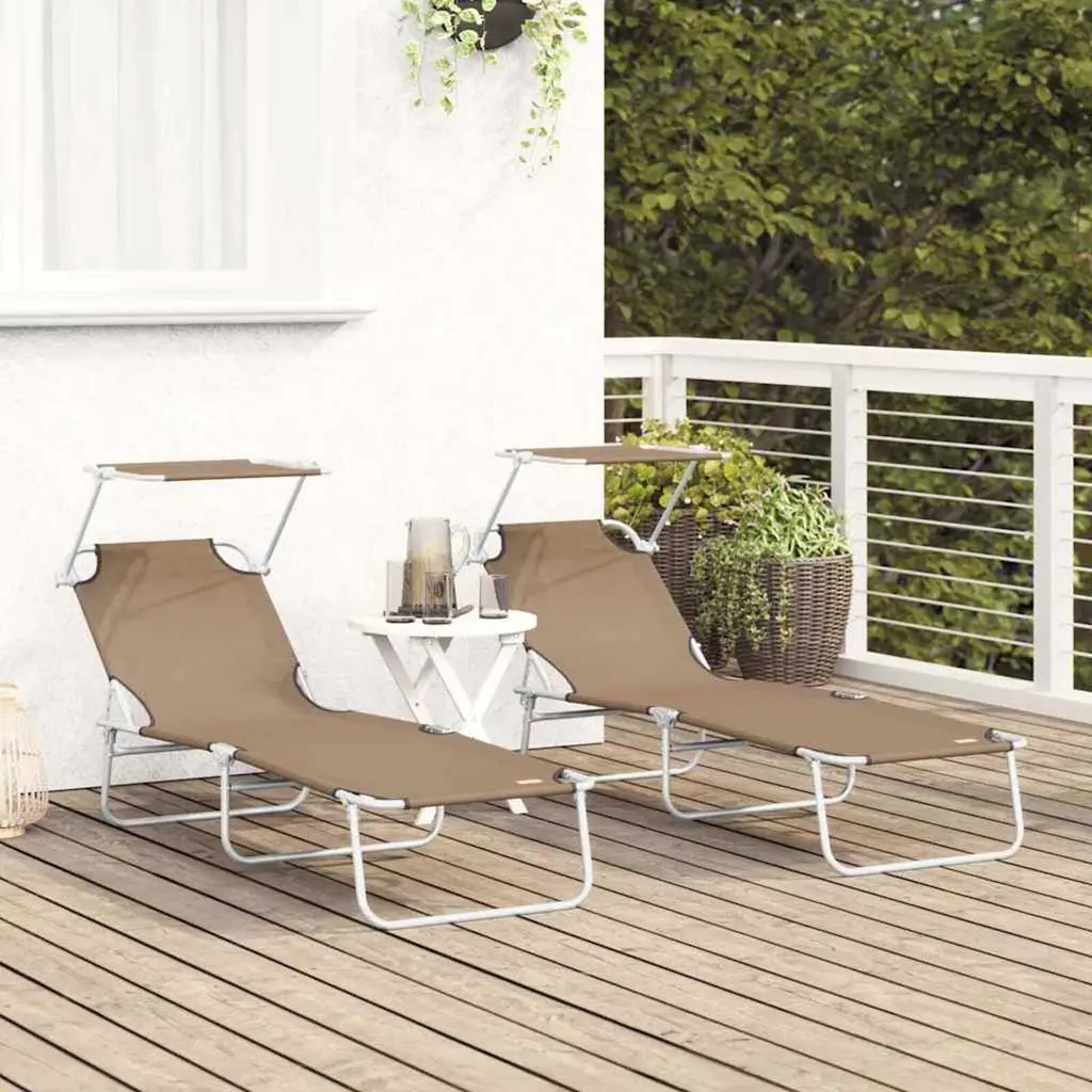 Vidaxl Sun Lounger Folding 2-Person 2 Pcs Taupe 58 X 188 X 77cm Fabric