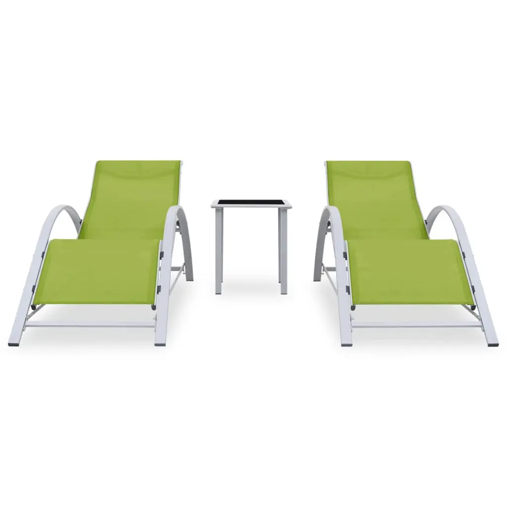 This 2-Piece Cushioned Sun Lounger Set redefines comfort for outdoor relaxation, perfect for anyone looking to kick back and enjoy some sun. With sleek lines and a vibrant green color, it fits right into any modern patio or garden, offering a chilled spot for leisure. Ergonomic Design: This set features a design that promotes relaxation, allowing you to unwind in comfort. The gentle curves and soft cushions give it a touch of luxury, inviting long hours of chill time by the pool or in your garden.Adjustable Armrests: Change the armrests easily to suit your style, boosting your comfort. This makes lounging even nicer, so you can find your ideal spot for reading, napping, or just enjoying the outdoors.Breathable and Waterproof Materials: Made from breathable Textilene fabric, this sun lounger set lets air circulate, so you stay cool. Plus, it’s waterproof, making it easy to care for and low hassle.Strong and Stable Structure: The aluminum frame and tempered glass table offer solid stability. This set can hold up to 242 lbs per lounger, so it’s safe and reliable for your lounging needs.Modern Aesthetic: The sleek design with modern aluminum details looks fantastic in any outdoor area, elevating your outside style. Its elegant look creates a chic atmosphere, whether you’re hosting friends or enjoying calm mornings.