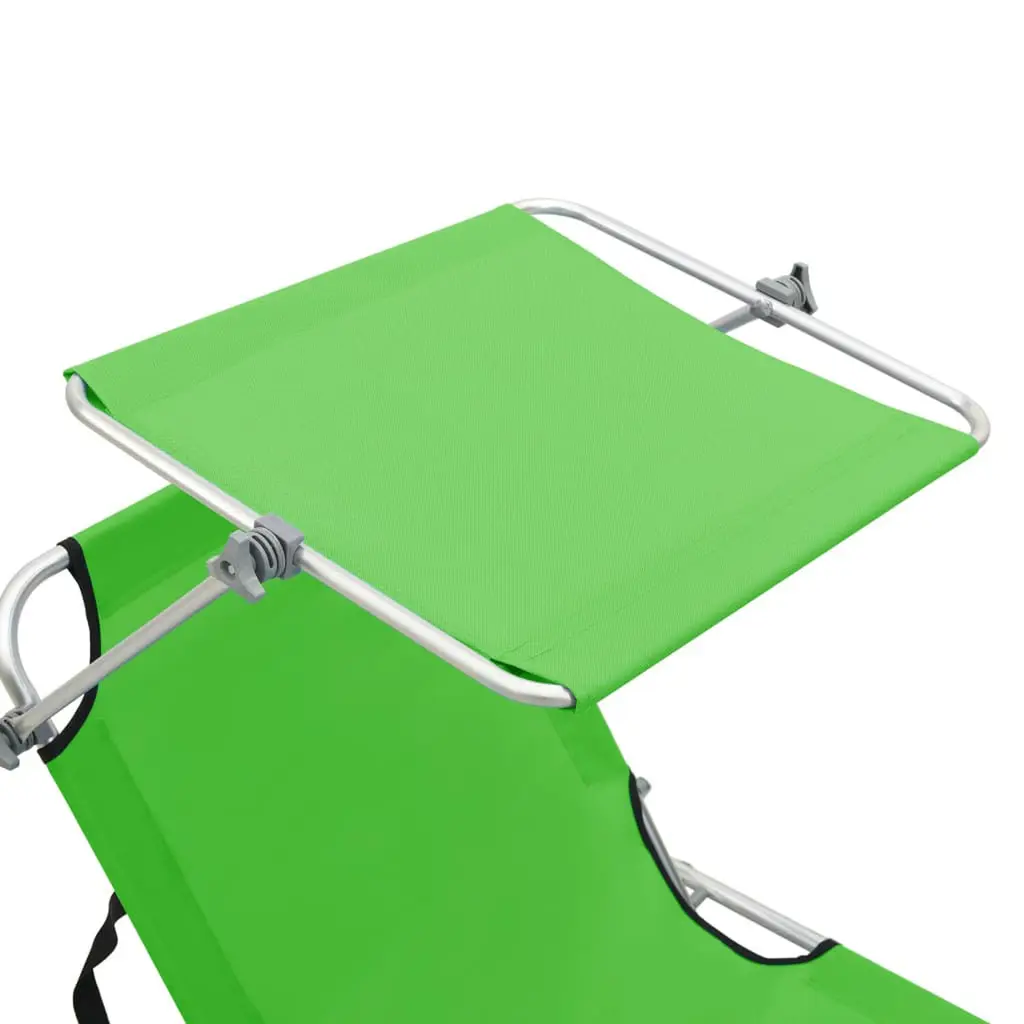 This Folding Sun Lounger with Canopy is a great addition to any outdoor space, giving you a stylish and practical way to relax in the sun. Its bright green color adds a fresh vibe, and the adjustable features boost comfort and usability. It's perfect for anyone wanting to enjoy sunny days in their garden, patio, or balcony. Adjustable Canopy: The sun lounger comes with an adjustable canopy that provides fantastic shade all day long, making sure you're comfy while soaking up the sun. This feature is particularly handy on those hot summer days.Foldable Design: It folds up easily for storage when not in use, which is fantastic for those with limited space. Taking it to the beach or park is a breeze, as it folds down for convenience.Durable Construction: Made from high-quality 600D polyester with PE coating, this lounger is both UV-resistant and water-resistant, ensuring it lasts. You can chill knowing your investment is safe from the elements.Comfortable Seating: With generous seating dimensions of 22.6 in wide and deep, this sun lounger offers plenty of space for you to relax. Its design calls for you to kick back, read a book, or just enjoy the outdoors.Sturdy Frame: The powder-coated aluminum frame is super durable and offers great support, holding up to 264.6 lbs smoothly, making it a solid choice for everyone.