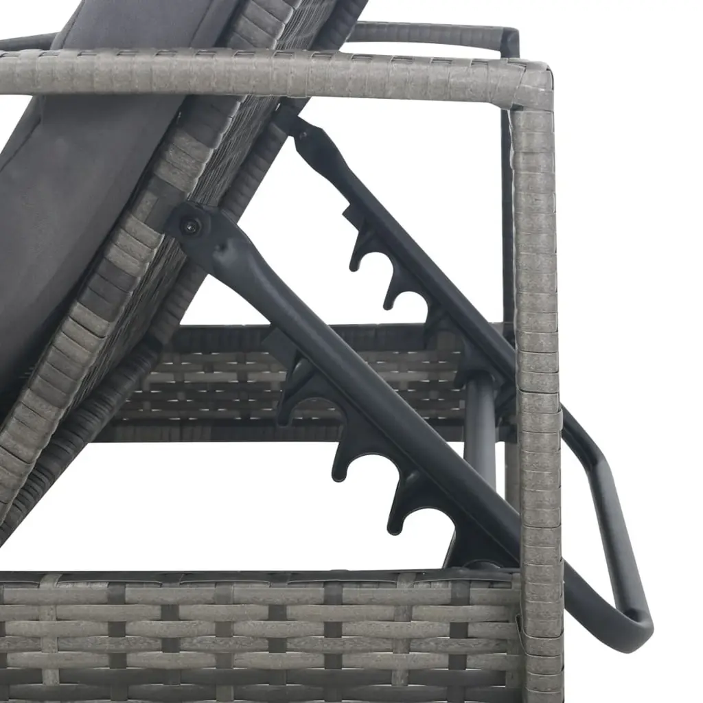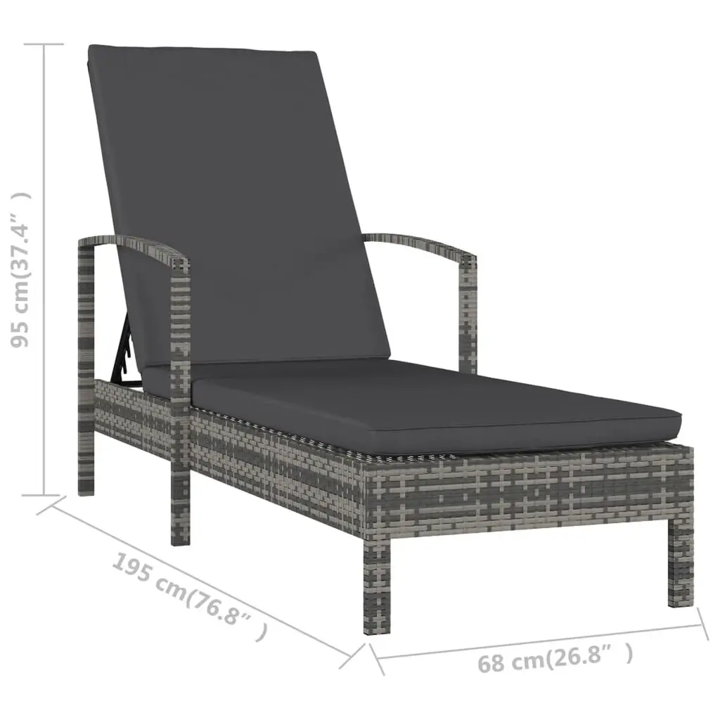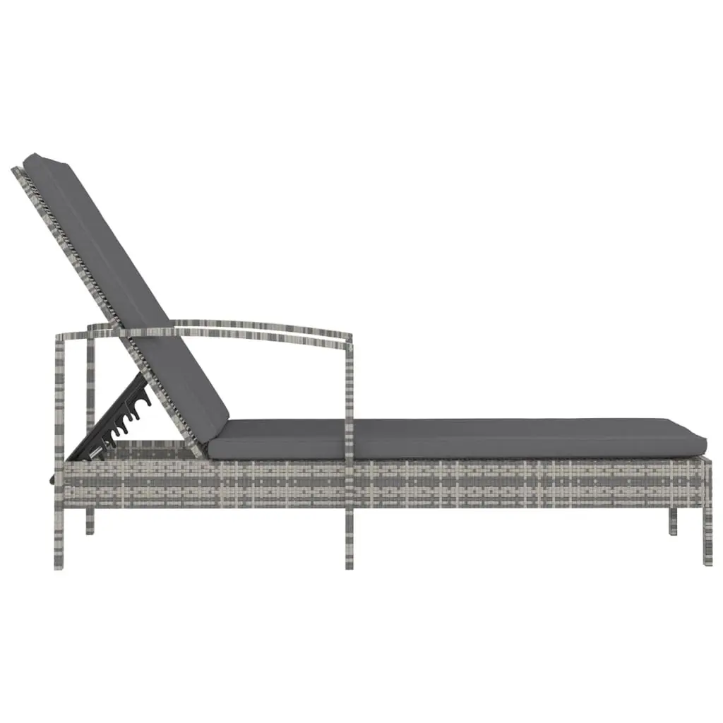 Vidaxl Sun Lounger Grey Pe Rattan Large Adjustable Backrest