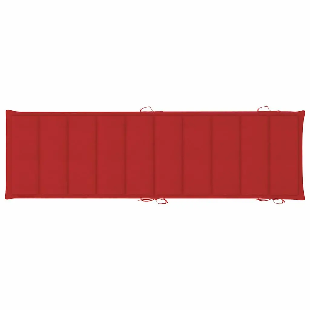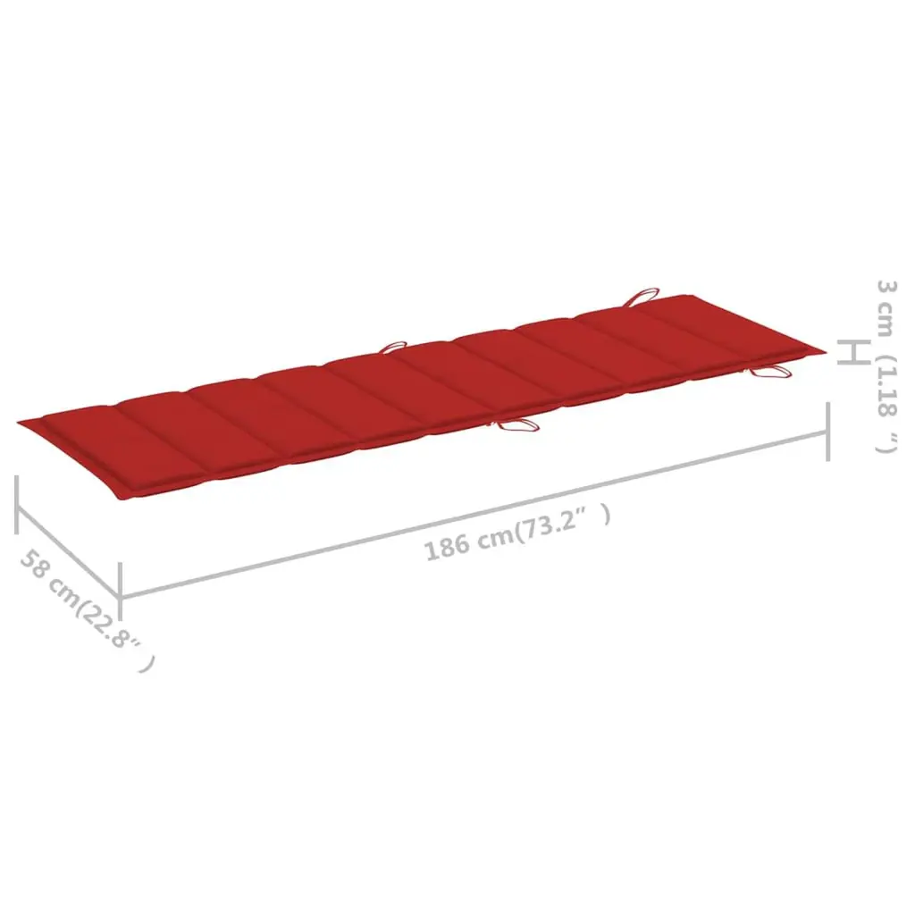 This Retro Rocking Sun Lounger with Cushion is perfect for anyone looking for a mix of comfort and style for outdoor relaxing. Made from solid teak wood, the lounger showcases a vibrant red cushion that really brightens up any poolside or balcony area—ideal for reading or soaking up some sun. Weather-Resistant Material: Made from solid teak wood, this lounger is built to handle the outdoor elements and last long. The wood has a water-based finish to keep it protected from moisture.Comfy Cushion: The cushion is made from soft polyester, giving great support and comfort to enhance your lounging time.Unique Rocking Feature: The rocking mechanism allows for a gentle motion, creating a relaxed atmosphere where you can unwind.Stylish Design: The bright red cushion paired with natural wood gives it a modern yet retro vibe, adding a striking touch to your outdoor furniture.Perfect for Small Spaces: Its compact dimensions make this sun lounger just right for balconies or small patios, so you can enjoy the outdoors even if you don't have much space.
