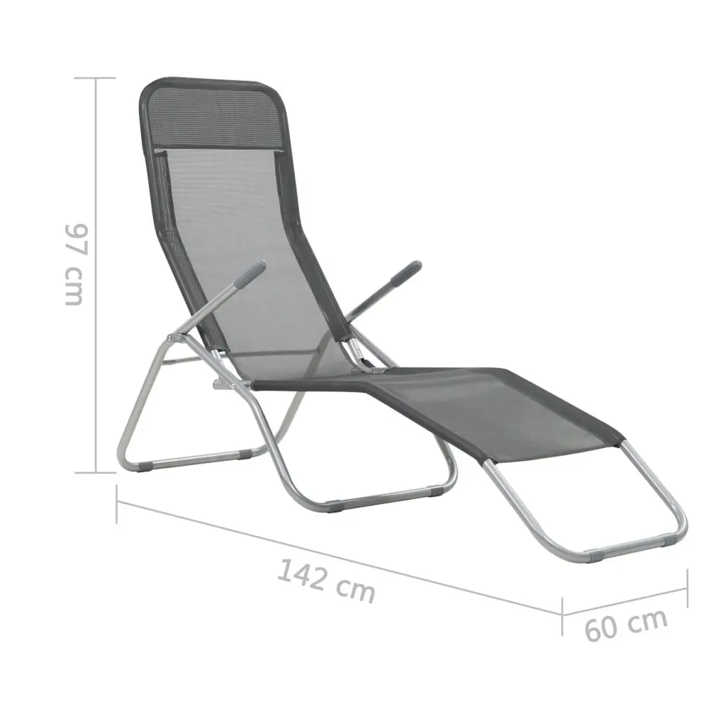 Check out this 2-Piece Folding Sun Lounger Set—perfect for chilling out on sunny days, whether you're on your balcony, in your garden, or hitting the beach. It's got a modern design with a nice anthracite finish, and the breathable Textilene surface makes it comfy and adds a stylish touch to any outdoor area. Adjustable Backrest: Change up how you relax with multiple reclining positions, perfect for sunbathing or enjoying a good book. Foldable Design: These loungers fold down easily for quick storage, making them just right for tight spots and taking them to different outdoor locations, from picnics to beach trips. Durable Construction: With a solid powder-coated steel frame, these loungers are tough and support up to 264.6 lbs while standing strong against the elements. Breathable Fabric: The Textilene material allows for good airflow, keeping you comfortable during warm weather. Easy to Clean: Maintenance is a walk in the park—just wipe them down with a damp cloth to keep them looking fresh.