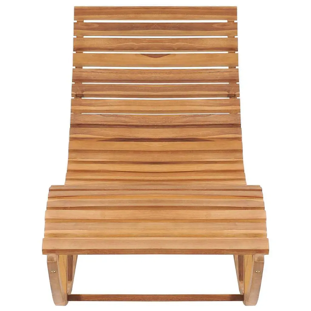This modern rocking sun lounger spruces up outdoor spaces with its sleek style and sturdy build. It's perfect for chilling while sunbathing or enjoying your garden, with its stylish wave shape and rich teak finish giving off an inviting vibe that pairs well with different outdoor settings. Weather-Resistant Teak Wood: The solid teak wood used here is known for its strength and ability to resist the weather, meaning it'll last and look great even outside. You can enjoy plenty of sunny lounging days worry-free.Comfy Polyester Cushion: The cushion is filled with durable polyester, made to handle outdoor life while delivering maximum comfort. Whether you’re reading or sipping a drink, you can really kick back and relax.Stylish Contemporary Design: With a smooth, sandblasted finish and chic wave shape, this sun lounger adds a modern touch to any balcony or garden setup. It's functional and looks good, enhancing your outdoor space.Gentle Rocking Feature: The gentle rocking motion creates a calming vibe, just right for chilling out or meditating outdoors. You can feel the rhythm of relaxation as you sway back and forth.Perfect for Outdoor Use: This sun lounger is great for various outdoor activities, making it perfect for any summer hangout, whether it’s sunbathing, reading, or catching up with friends. Use it by the pool, on the patio, or out on your balcony.