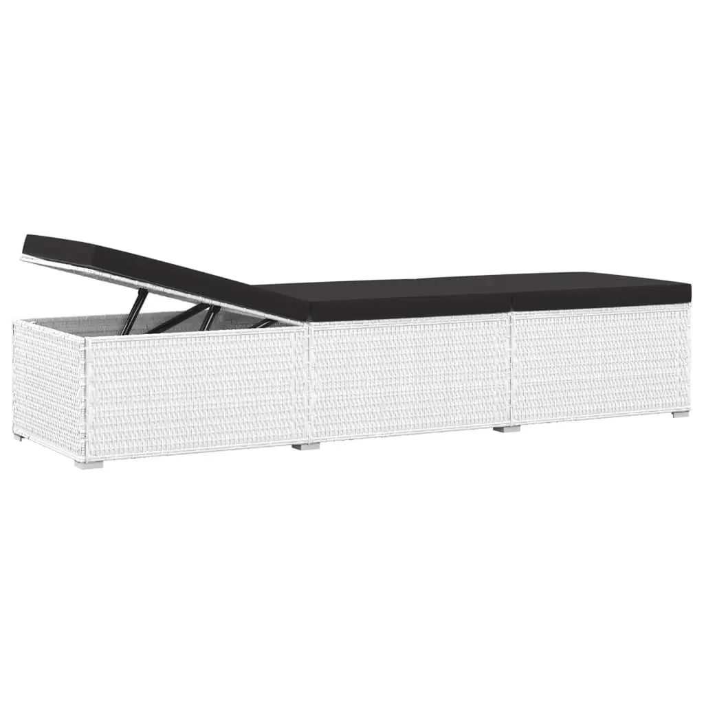 Vidaxl Sun Lounger White Pe Rattan 76.8 In X 23.6 In X 12.2 In