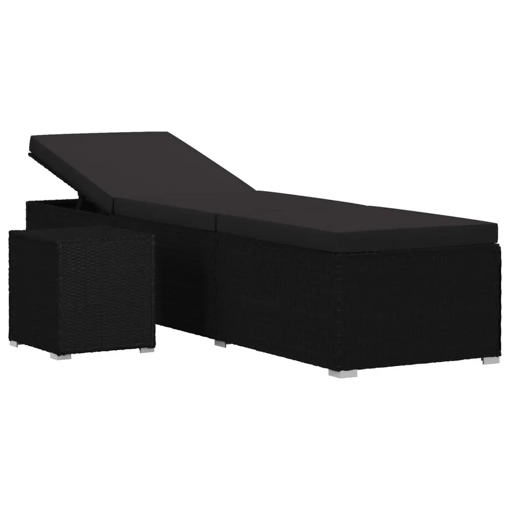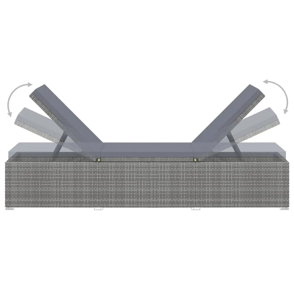 Vidaxl Sun Lounger With Cushion And Tea Table Poly Rattan Gray