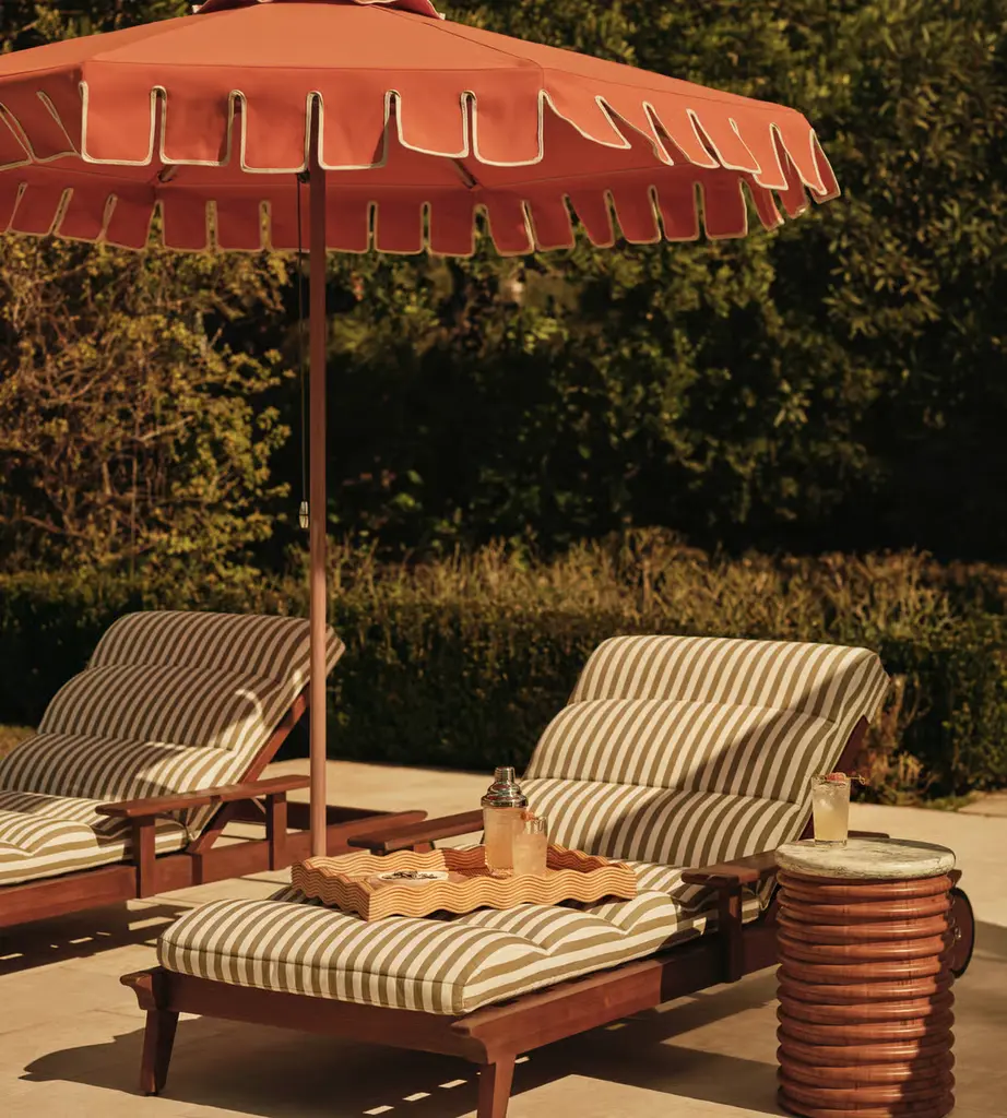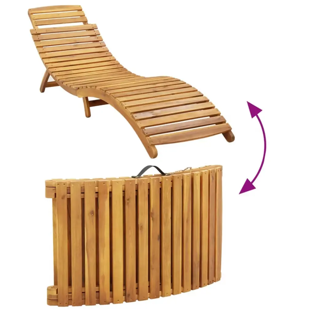 With an attractive design, this sun lounger is ideal for sunbathing and relaxing near the swimming pool, on the patio, or in the garden. Solid acacia wood: The sunlounger is made of solid acacia wood, a tropical hardwood, which is weather resistant and highly durable.Comfortable seat experience: This outdoor furniture, complete with a thickly padded cushion and an added pillow, offers a comfortable seating experience.Slatted design: The outdoor sun lounger features a slatted design that allows for easy drainage and also adds a touch of natural charm to your outdoor living space.Foldable design: This sunlounger can be folded to save space when not in use.Wide applications: The outdoor lounge chair with its simple and timeless design is suitable for poolsides, balconies, gardens, patios, etc. Good to know:To make sure your outdoor furniture stays beautiful, we recommend protecting it with a waterproof cover.