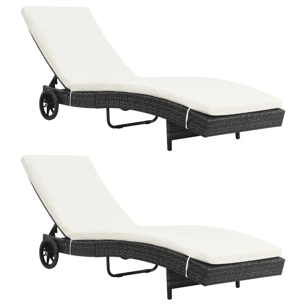Vidaxl Sun Lounger With Wheels And Cushion Poly Rattan Black
