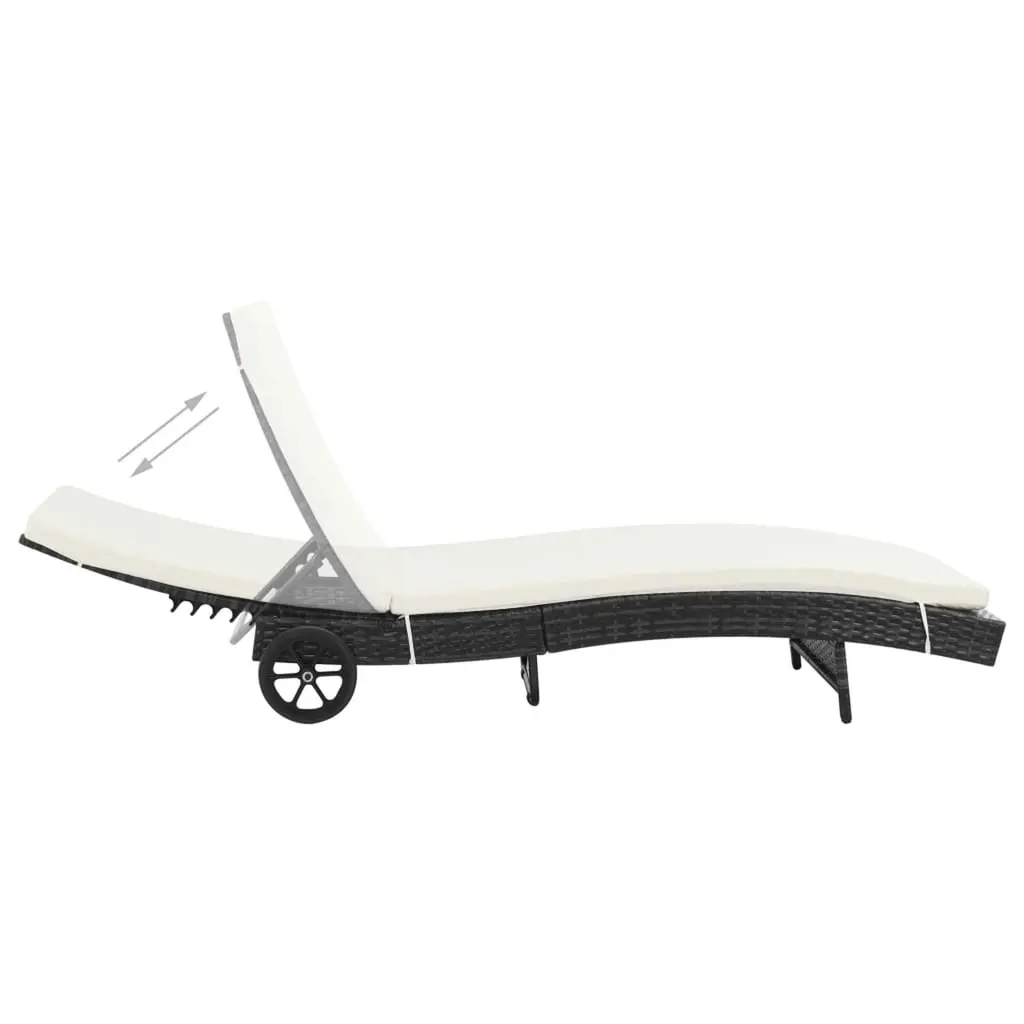 Vidaxl Sun Loungers 2 Pcs With Wheels And Cushions Poly Rattan Black