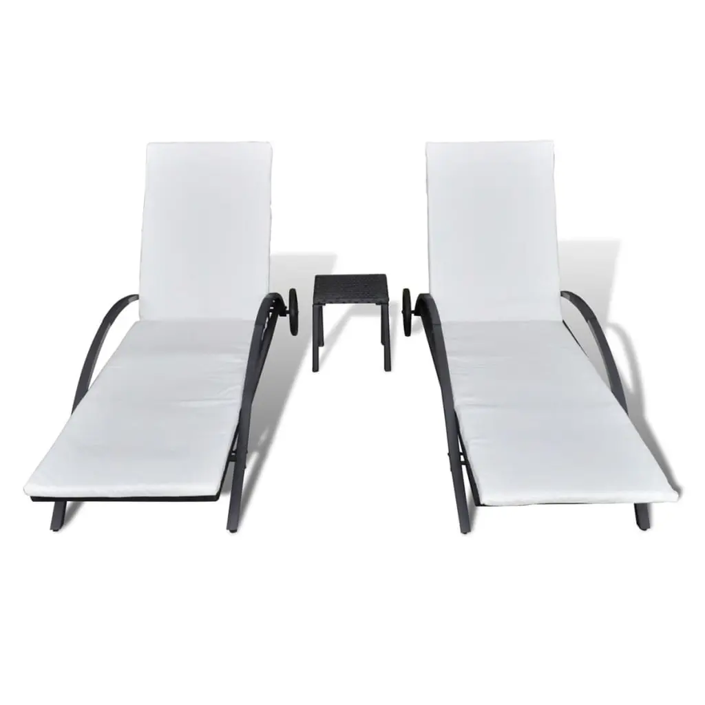 Vidaxl Sun Loungers With Table Poly Rattan Black