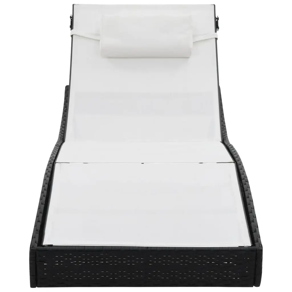 Vidaxl Sunlounger Black Steel Frame, Poly Rattan, Textilene Extra Long