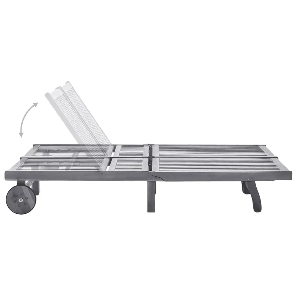 Vidaxl Sunlounger Grey Solid Acacia Wood 2-Person Adjustable Armrests