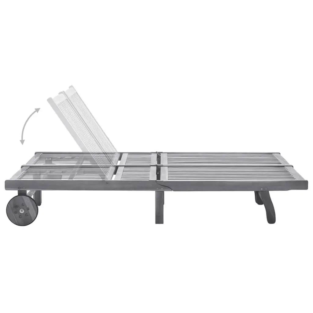 Vidaxl Sunlounger Grey Solid Acacia Wood Double Adjustable Armrests