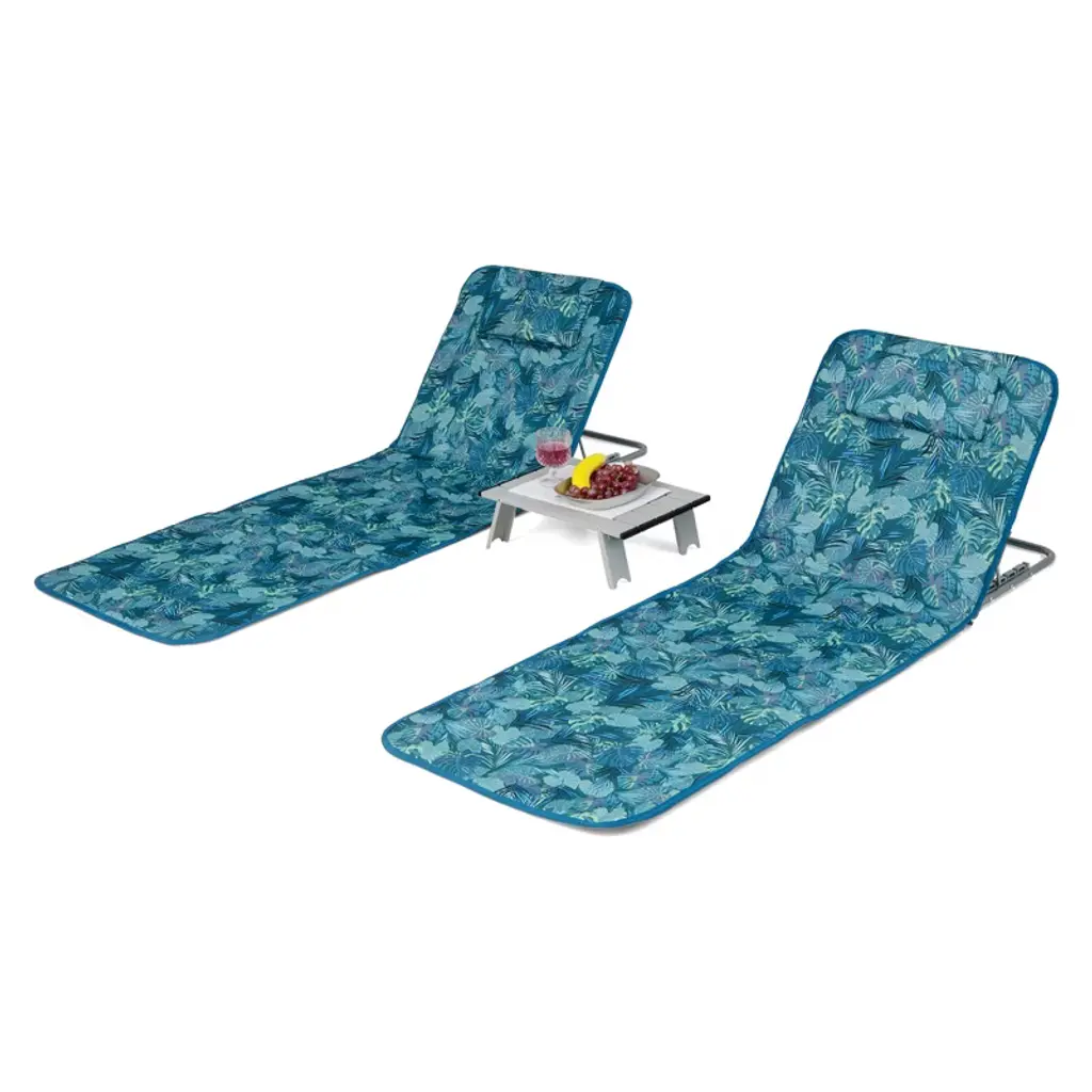 This folding sun lounger set, with its cheerful leaf pattern, is all about comfort and style for your outdoor spaces. It's perfect for soaking up the sun on your balcony or kicking back in the garden, providing a comfy spot to unwind after a long day. Adjustable Backrest: You can find your perfect lounging angle, whether you want to sit up to read a book or lie back to soak up the sun. This adjustable backrest makes it super comfy for long sessions in the sun.Durable Frame: Built from strong powder-coated steel, this sun lounger can take a beating while offering solid support, giving it a long lifespan. You can count on it during the summer and beach seasons without worrying about wear.Compact Design: This sun lounger folds up easily, making it super simple to store or carry wherever you go, perfect for beach trips or camping adventures. It's a handy solution when space is tight.Weather Resistant: The fabric and steel stand up to UV rays and water, so this lounger keeps its bright colors and sturdy structure even against nasty weather. This feature is essential if you want your outdoor furniture to last long.Great for Outdoor Spaces: Whether on a balcony, in the garden, or any outdoor spot, this sun lounger brings comfort to your chill-out areas, making it a versatile choice for your home. The stylish floral design suits different decor styles while adding a comfy seating option for all your outdoor gatherings.
