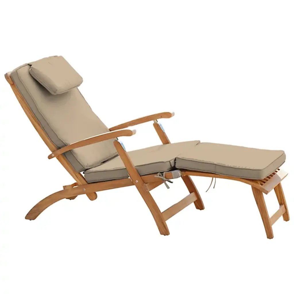 Vidaxl Sunlounger With Table Beige Solid Acacia Wood Standard Foldable
