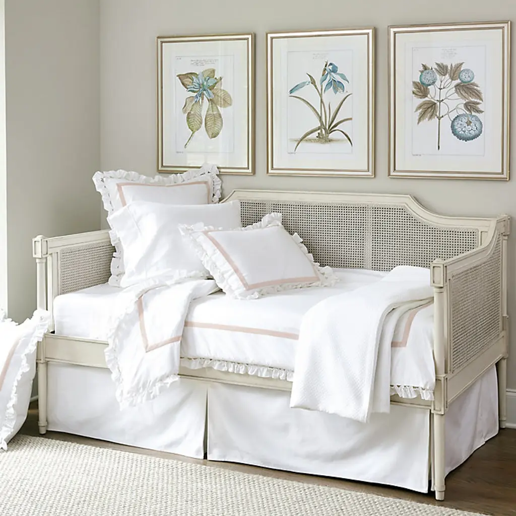 A daybed is one of our favorite furniture ideas for spaces that need to do double duty as a bedroom/office or bedroom/living area. By day, our Villandry Daybed is a deep cozy sofa. By night, it's a twin size bed. A fresh update on classic Louis XVI style, this lovely cane daybed is handmade of mahogany with double-caned arms and back that surround you with inviting texture. Tapered legs are crowned with smooth corner blocks. Villandry Daybed features: