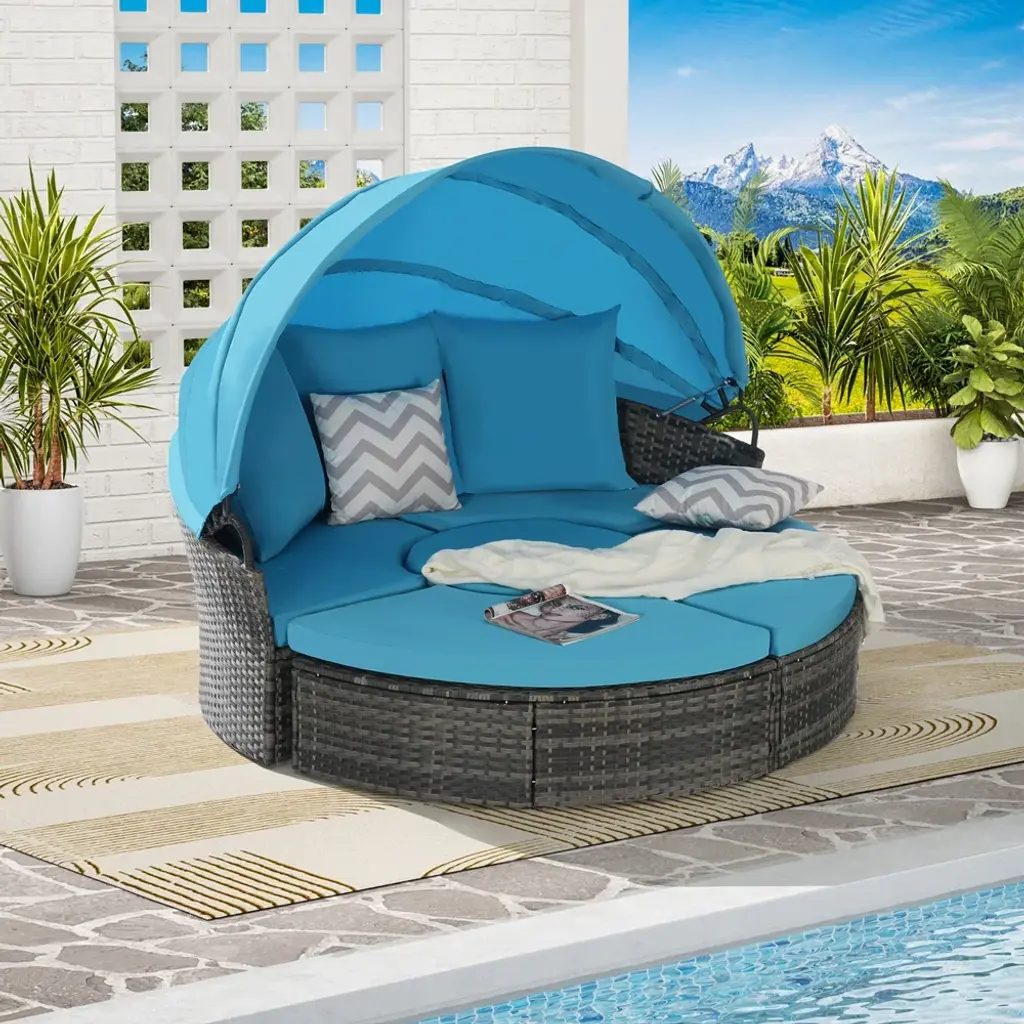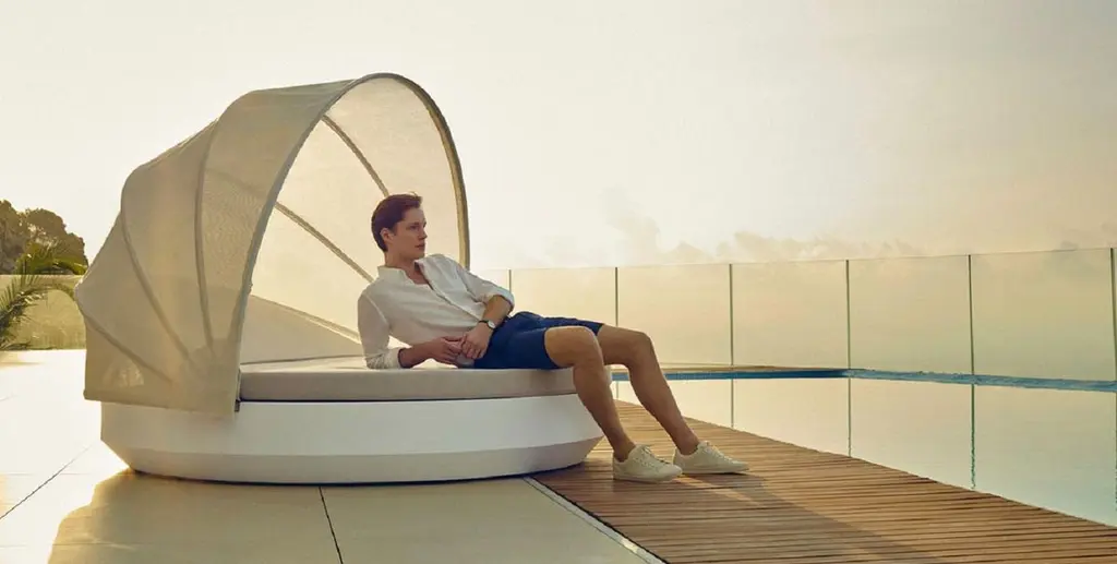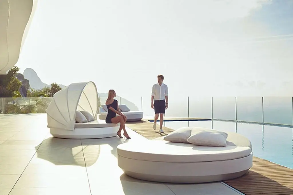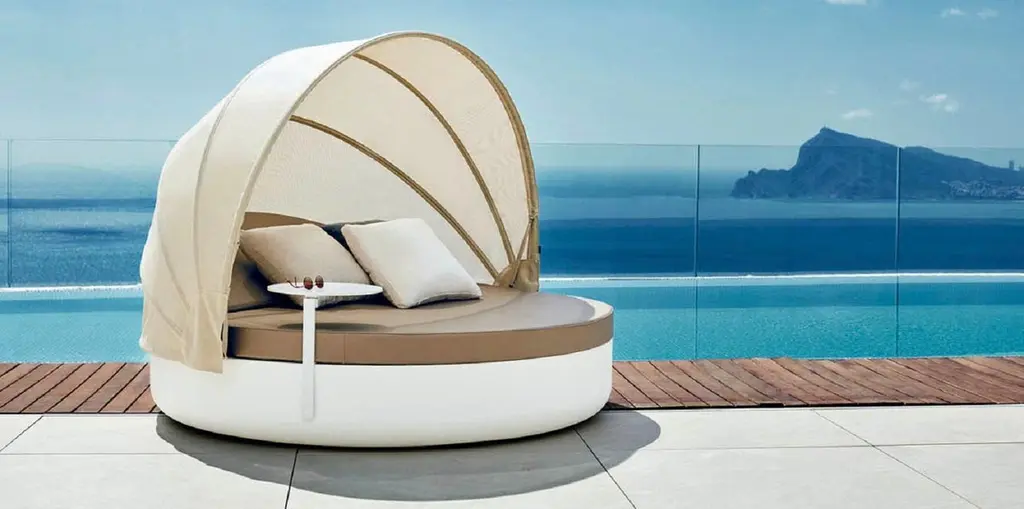 Vondom Vela Round Daybed With Reclining Backrest And Folding Canopy