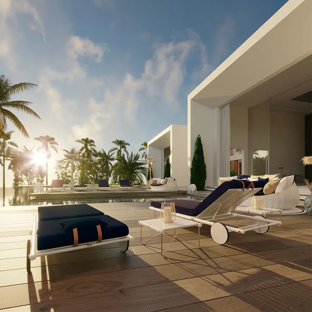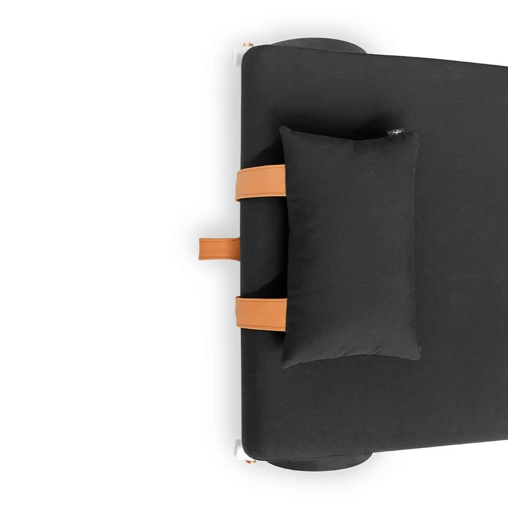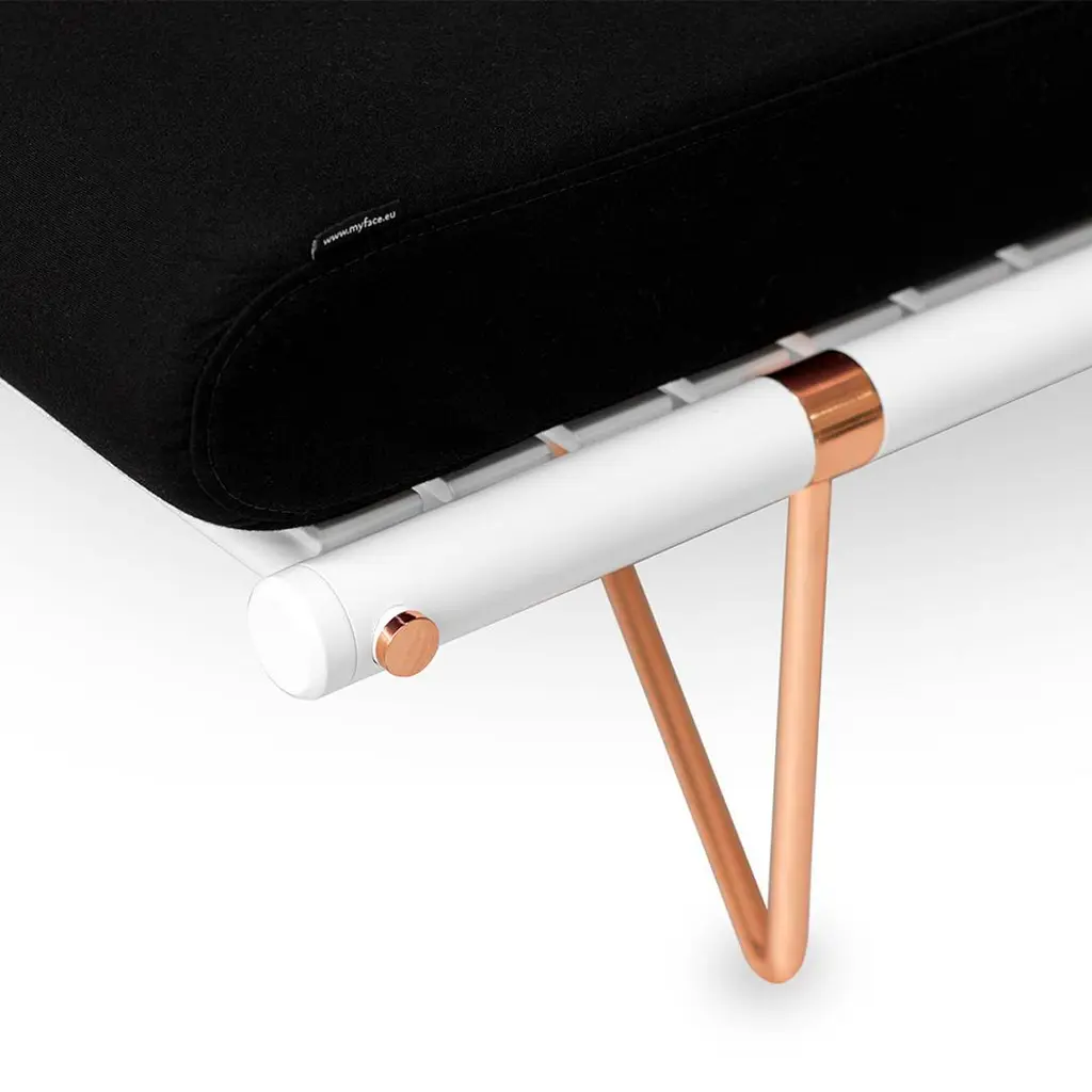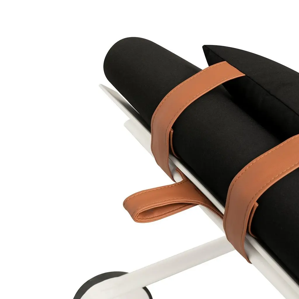 Noa SunbedWhere sleek modern design meets everyday functionality. Crafted with a premium foam cushion wrapped in durable, weather-resistant fabric, it promises not just exceptional comfort but lasting quality. The removable, washable cushion and adjustable backrest allow to tailor your lounging experience effortlessly to suit any moment.Equipped with wheels for easy mobility.The whole design of this elegant outdoor sunbed was developed according to the following structure: -Top: White matte lacquered aluminum and stainless steel;-Details: Copper plated stainless steel;-Upholstery: Acrylic fabric;-Straps: Outdoor leather.All Myface materials are from premium suppliers, engineered to offer the best performance possible outdoors.Water, Mold, Mildew, UV and Fading resistance are some of the characteristics that you can expect from both materials, that are available in a wide array of colors and patterns.Noa, outdoor sunbedSome of the customization options for your Noa sunbed: Myface White, Myface Blue, Dark Bronze, Copper Brushed, Gemini Light Orange, Gemini Red, and Gemini Bordeaux.Designed with meticulous attention to detail, the Noa sunbed combines elegant copper details and lacquered aluminum lines in an extremely comfortable and sophisticated lounger. Also features an automatic lifting mechanism that helps to find the best possible position for your sunbath experience.