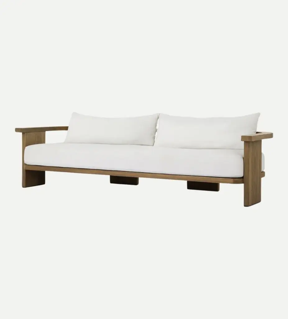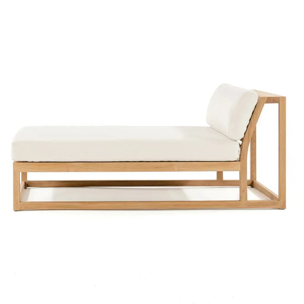 The Maya Teak Chaise Daybed can be used alone as a lounger or can be combined with other pieces from the Maya Collection. Plush cushions sit atop a minimal but extremely sturdy teak frame, giving the daybed the impression of lightness.