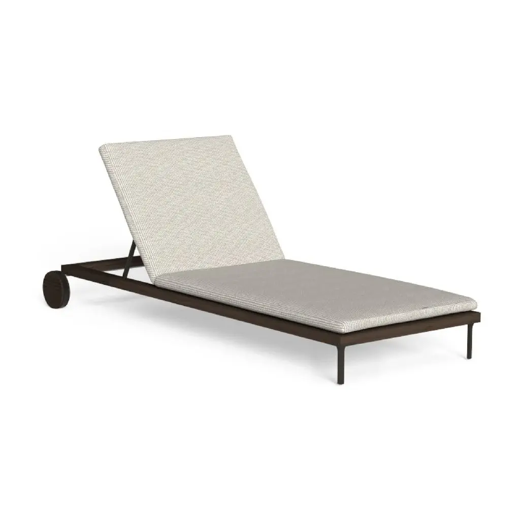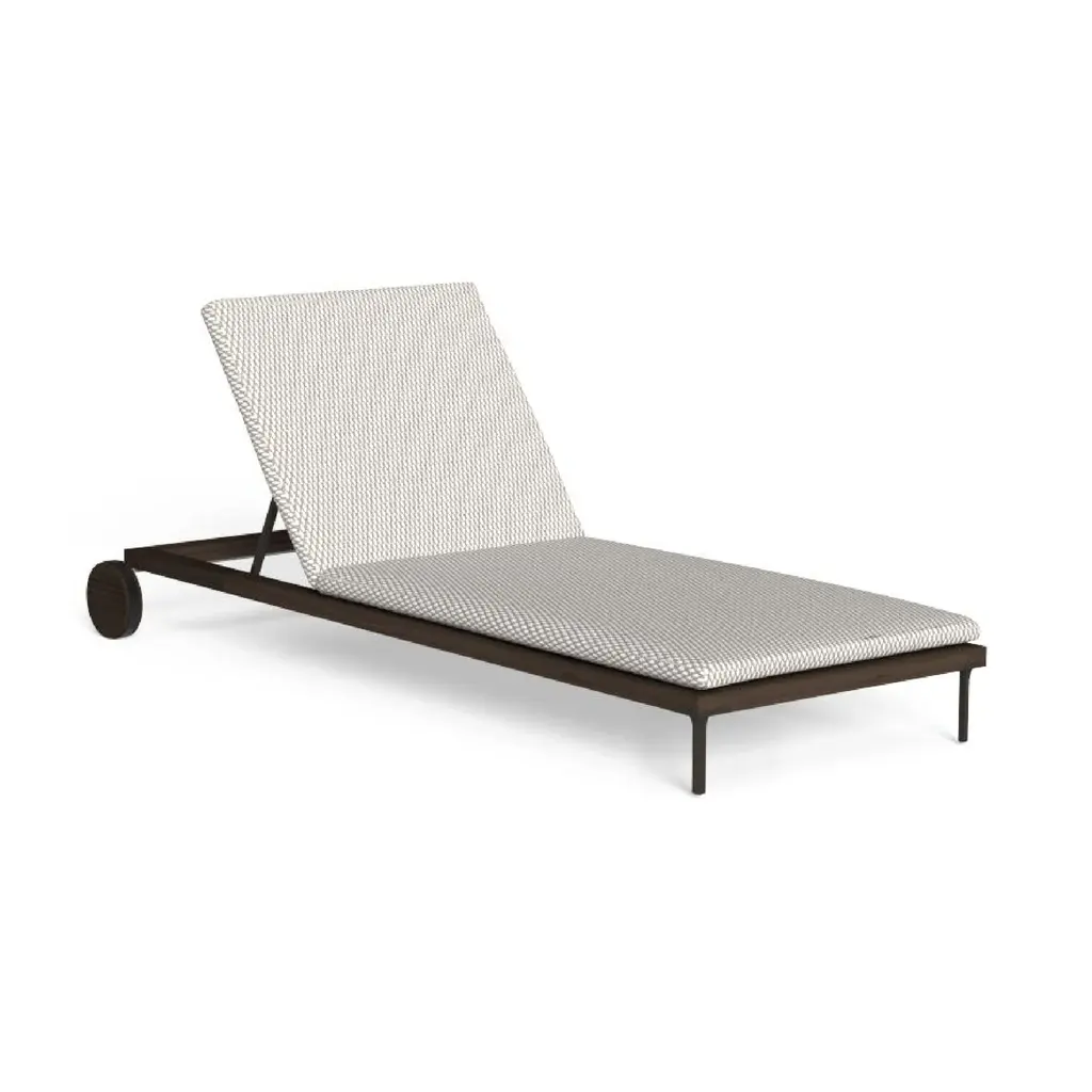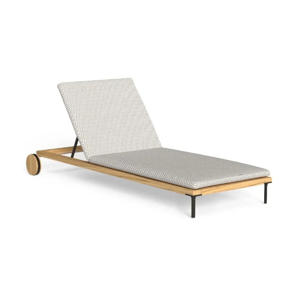 The CleoSoft Wood sun lounger recalls the geometric lines of the voluminous modules of the collection. Characterized by a wooden frame, it has a reclining backrest, it is equipped with wheels and it is stackable. The cushions, padded in quick dry foam, have removable covers, easy to wash and weatherproof.
