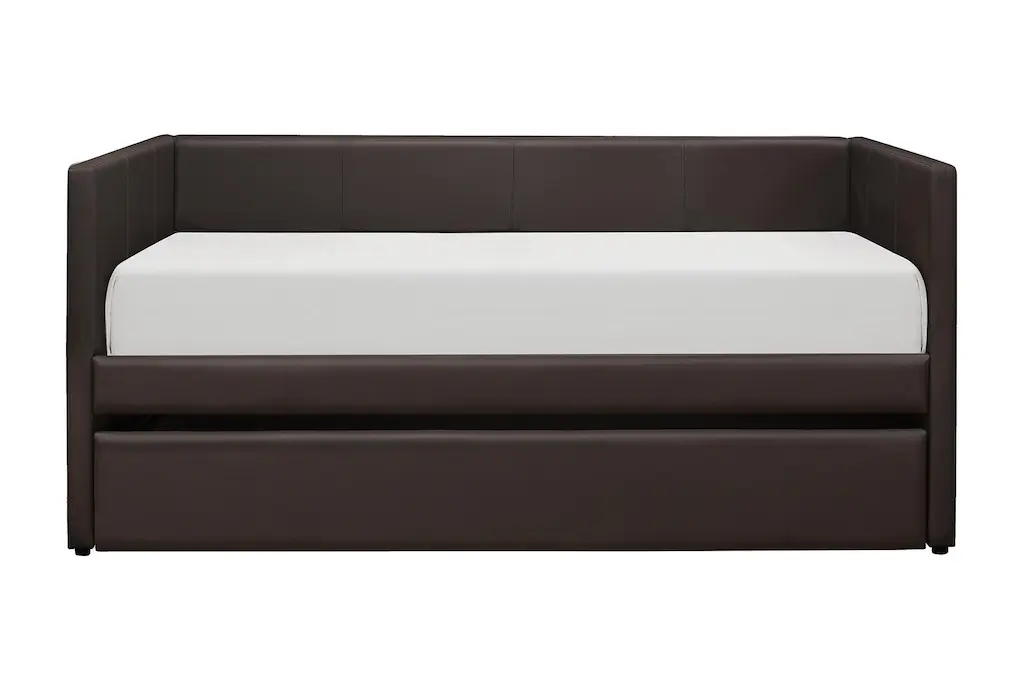 Woodwell Brown Leather Twin Daybed With Twin Trundle