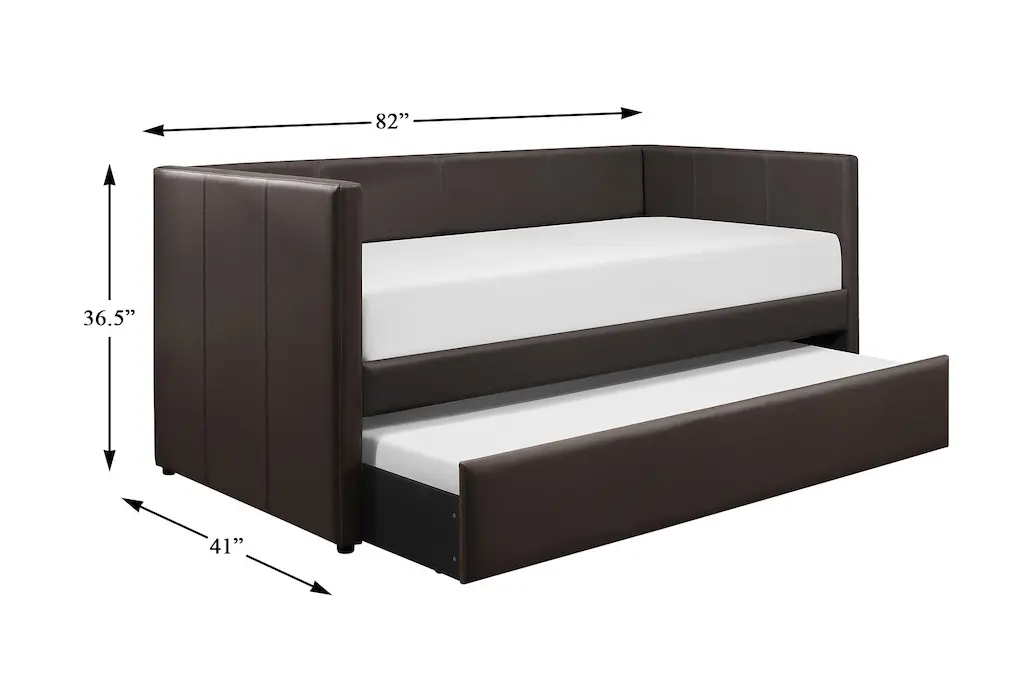 This Woodwell Brown Leather Twin Daybed with Trundle is the epitome of modern style and luxury, perfect for any bedroom. The faux leather material adds a touch of sophistication, while the trundle feature provides extra sleeping space for guests.